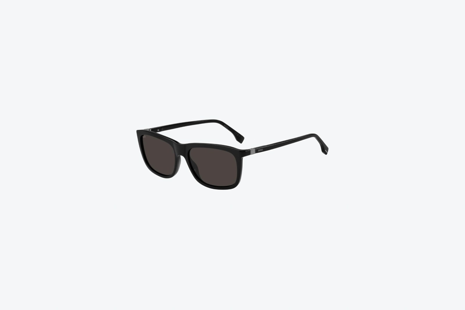 Мужские солнцезащитные очки от BOSS выполнены из ацетата в чёрном цвете. Линзы выполнены в сером цвете.