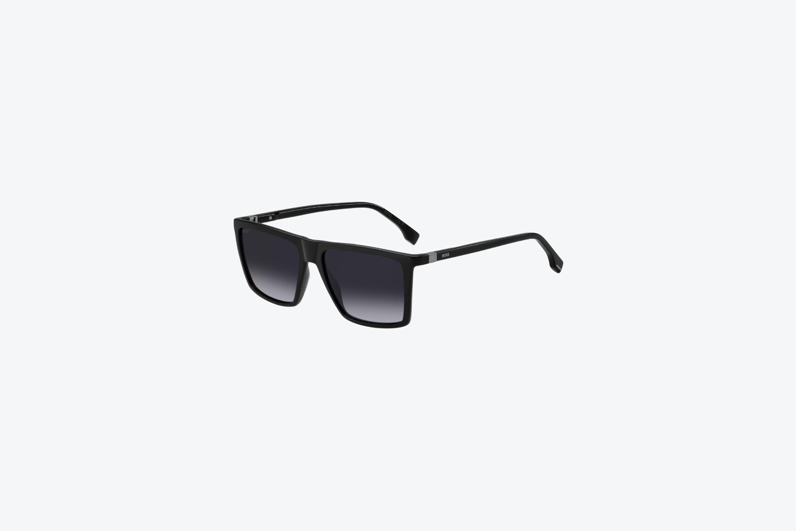 Мужские солнцезащитные очки от BOSS выполнены из ацетата в чёрном цвете. Линзы выполнены также в чёрном цвете.