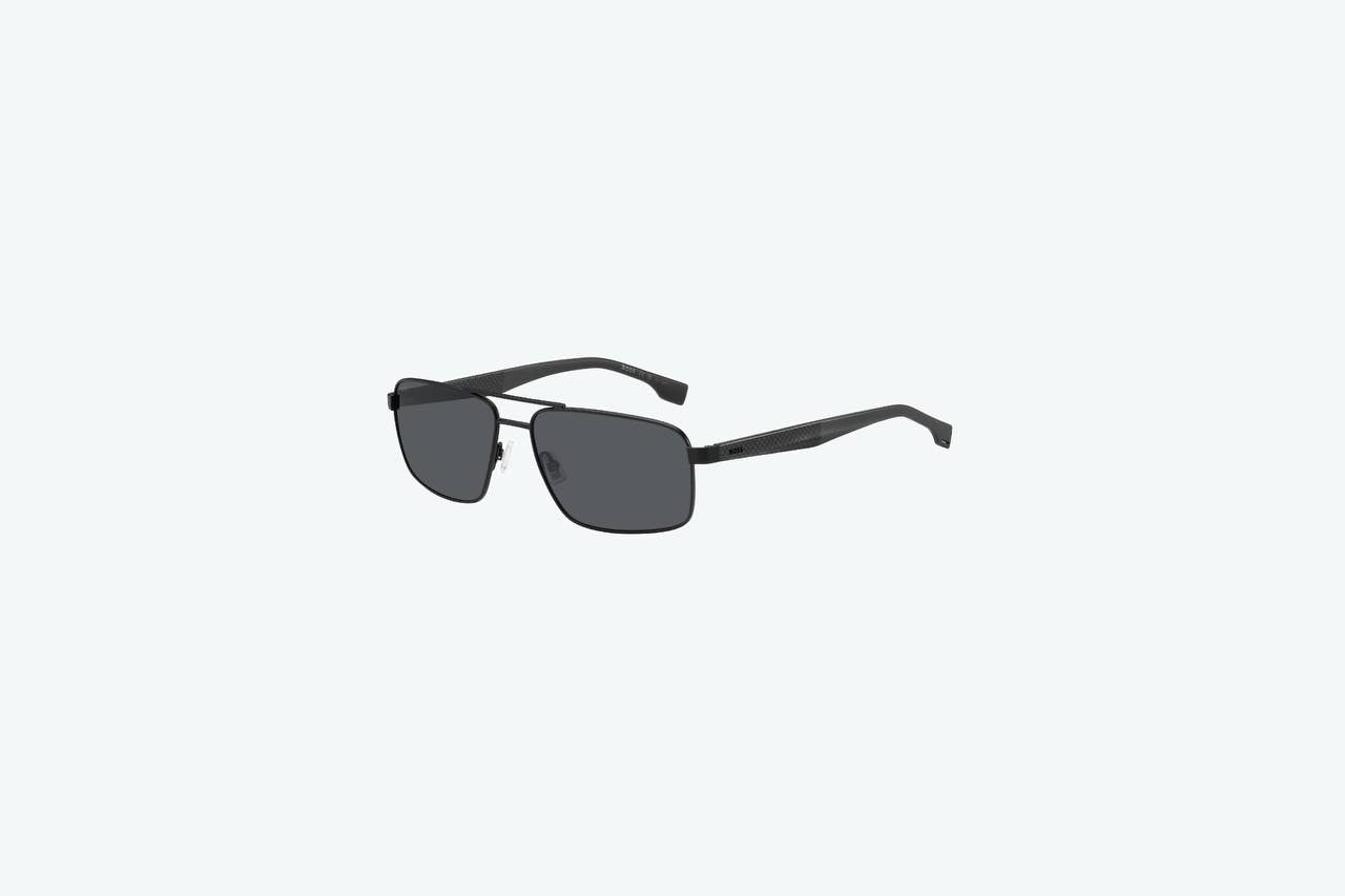 Мужские солнцезащитные очки от BOSS выполнены из металла в чёрном цвете. Линзы выполнены в сером цвете.