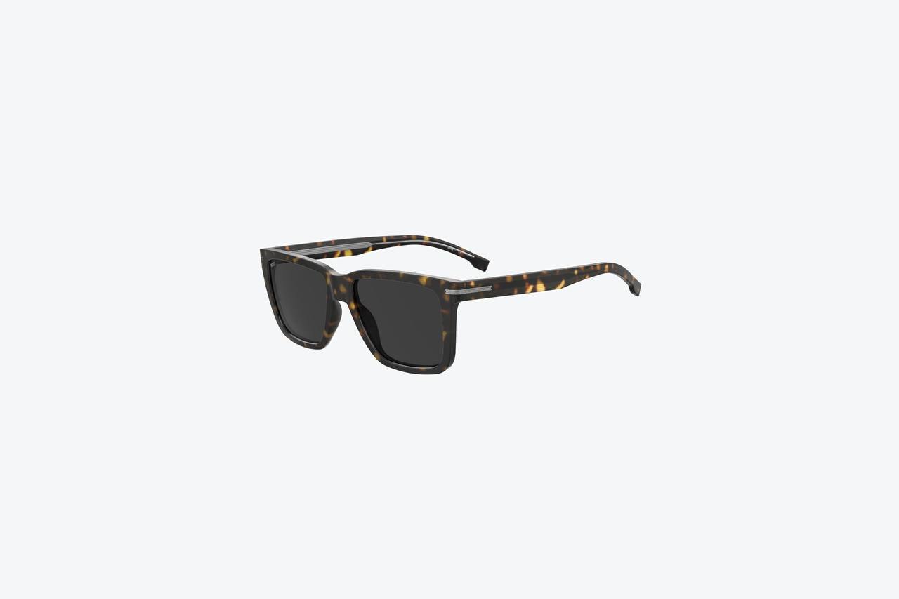 Мужские солнцезащитные очки от BOSS выполнены из ацетата в цвете "Havana". Линзы выполнены в цвете "Grey".
