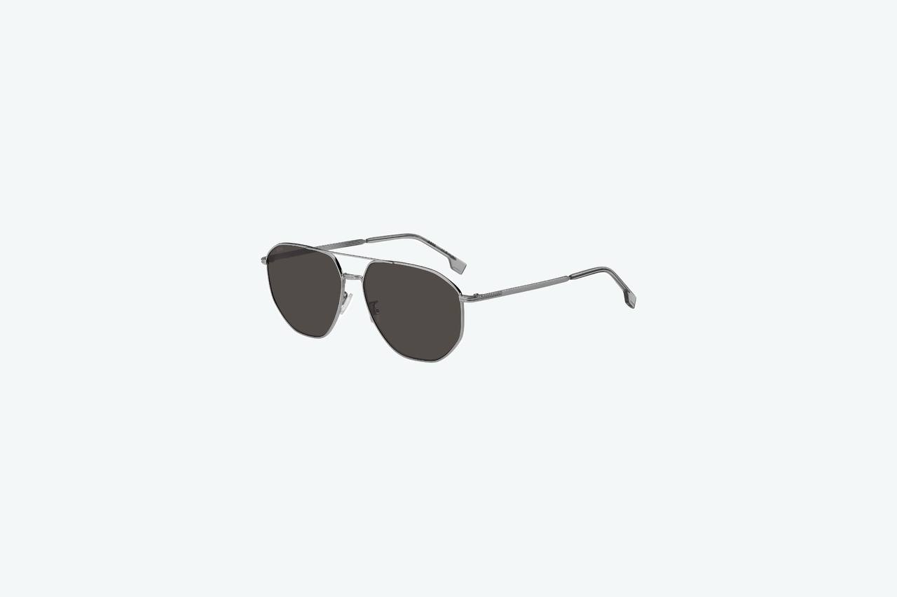Мужские солнцезащитные очки от BOSS выполнены из металла в цвете "RUTHENIUM". Линзы выполнены в цвете "GREY".