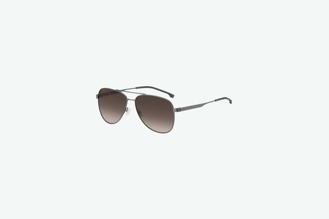 Мужские солнцезащитные очки от BOSS выполнены из металла в цвете "Matte Dark Ruthenium". Линзы выполнены в цвете "Brown Shaded".
