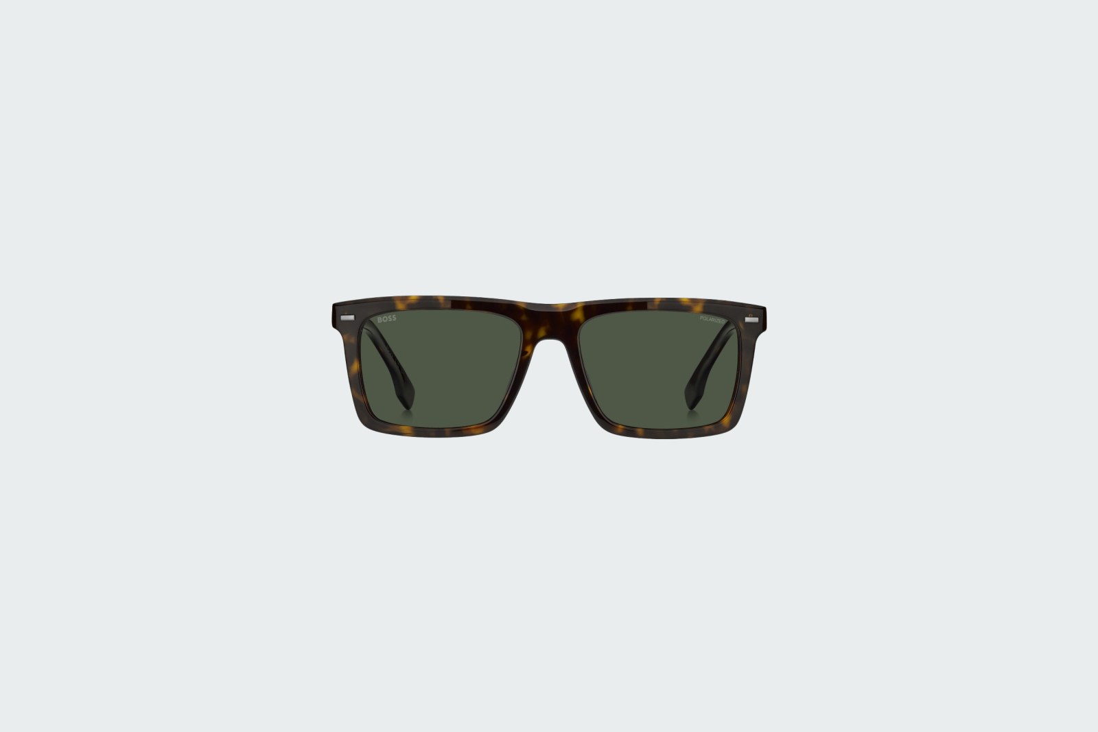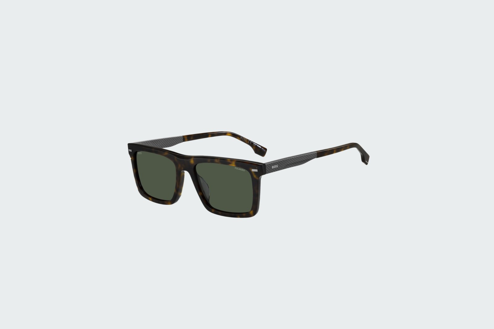 Премиальные солнцезащитные очки BOSS с акцентной комбинированной оправой (металл и пластик) в золотисто‑коричневой гамме. Форма подчёркивает женственность. Линзы коричневые с зеркальным эффектом, защищающие от яркого света. Модель создана для женщин, любящих выразительные детали. Подходит для вечерних выходов и стильных дневных луков.