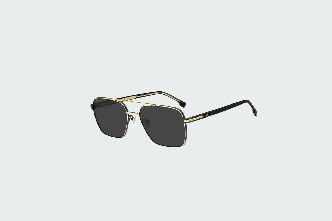 Изящные солнцезащитные очки BOSS с металлической оправой золотистого цвета. Форма — овальная, мягко обрамляющая лицо и придающая образу утончённость. Линзы серые с поляризационным слоем, защищающим от бликов. Модель создана для женщин, предпочитающих изысканный дизайн. Подойдёт для деловых встреч и светских мероприятий.