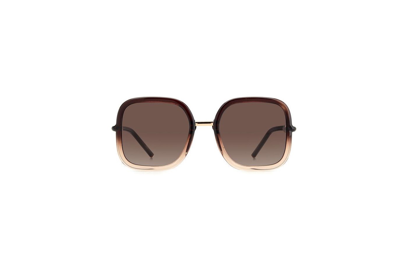 Оверсайз-оправа с отделкой из искуственного жемчуга. Очки выполнены из глянцевого ацетата, дополнены затемненными линзами и золотистыми металлическими дужками. 100% защита от ультрафиолетовых лучей.