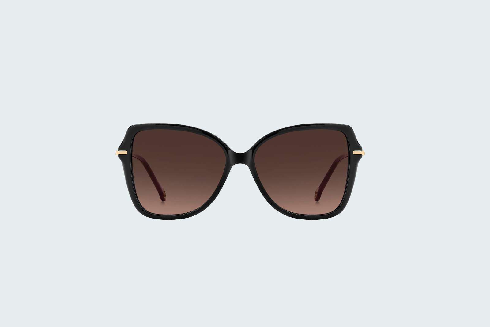 Солнцезащитные женские очки Carolina Herrera 0302/S в коде цвета 3H2 выполнены в насыщенном черном цвете с золотистыми акцентами и градиентными линзами теплого коричневого тона. Их элегантный дизайн с закруглёнными линиями и тонкими акцентными дужками с красными деталями отражают испанскую роскошь и сдержанный шик бренда. Модель оснащена высококачественными линзами с защитой UV, обеспечивающими блокировку ультрафиолета и естественную цветопередачу. Лёгкая оправа из пластика гарантирует удобную посадку. Узнаваемый логотип Carolina Herrera на дужке и изящные детали подчёркивают наследие бренда, придавая аксессуару утончённость.