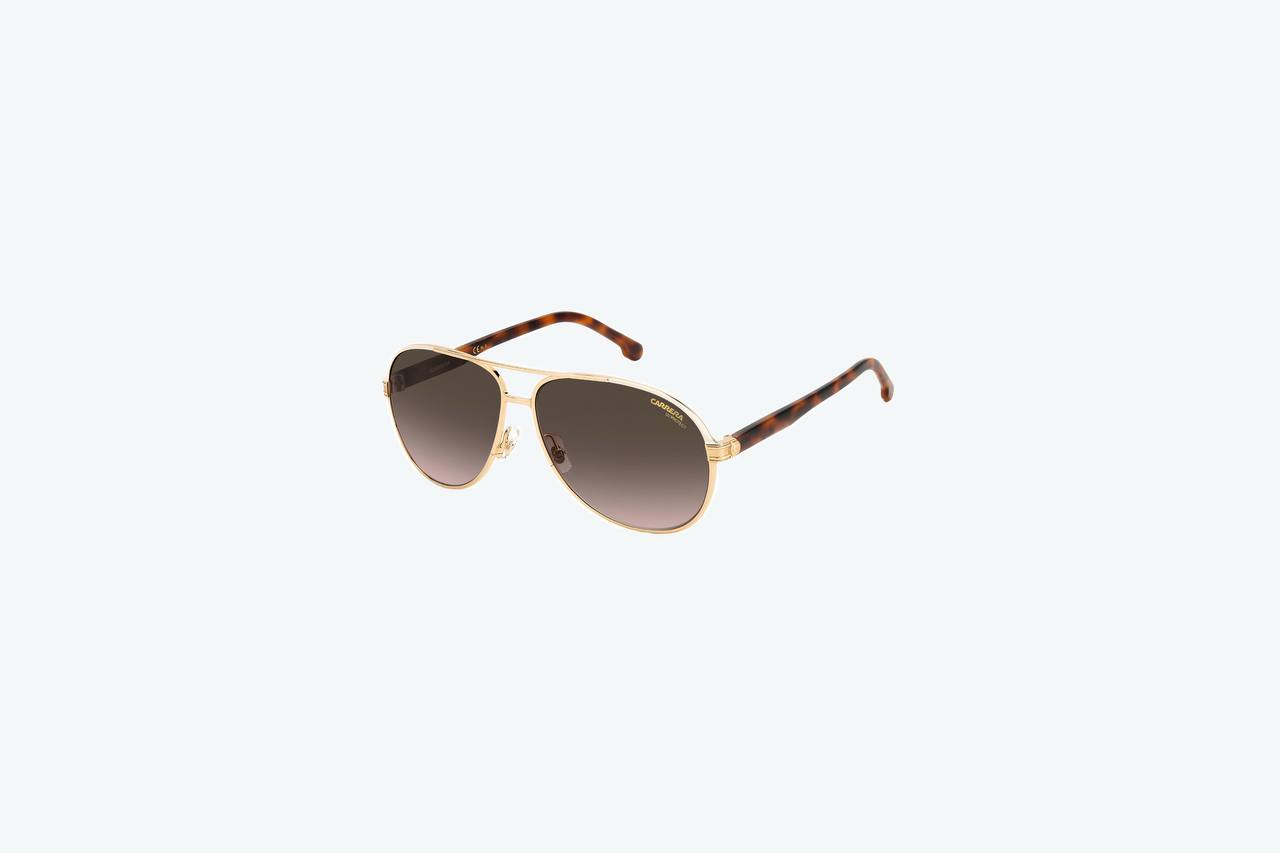 Мужские солнцезащитные очки от CARRERA выполнены из металла в цвете "Gold Ivory". Линзы выполнены в цвете "Brown Shaded". Очки обладают 100% защитой от ультрафиолетового излучения.