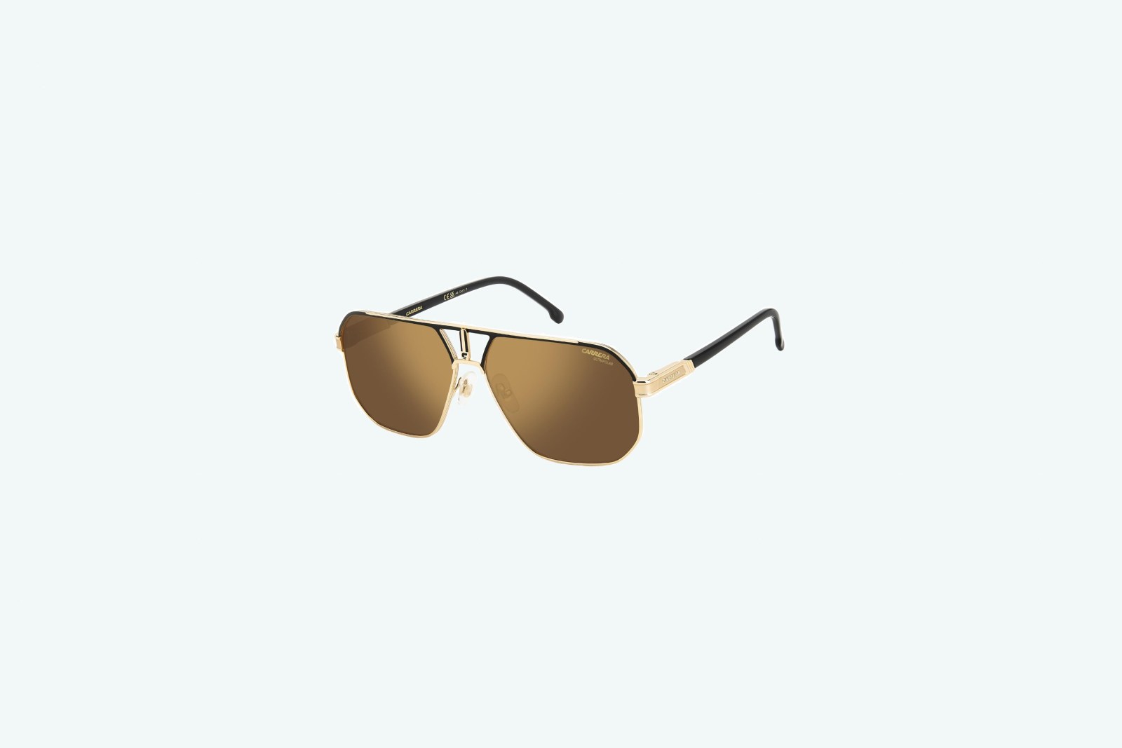 Мужские солнцезащитные очки от CARRERA выполнены из стали в цвете "Matte Black Gold". Линзы выполнены в цвете "Gold High Contrast Polarized". Очки обладают 100% защитой от ультрафиолетового излучения.