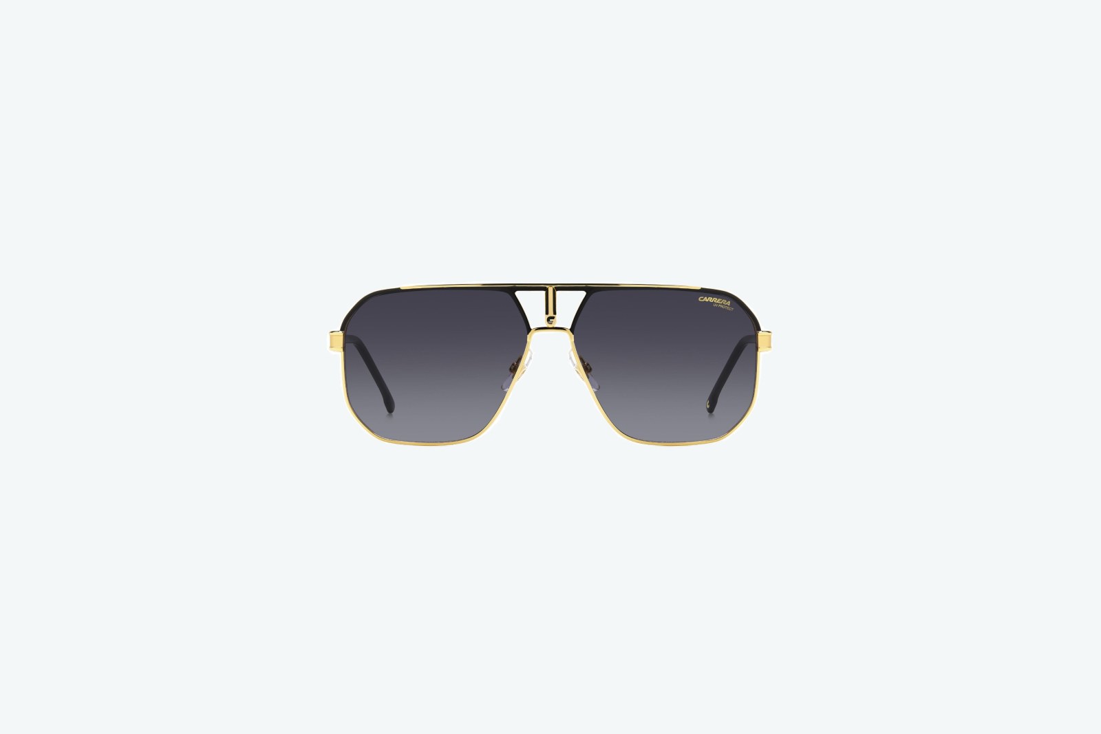 Мужские солнцезащитные очки от CARRERA выполнены из стали в цвете "Matte Black Gold Black". Линзы выполнены в цвете "Dark Grey Shaded". Очки обладают 100% защитой от ультрафиолетового излучения.