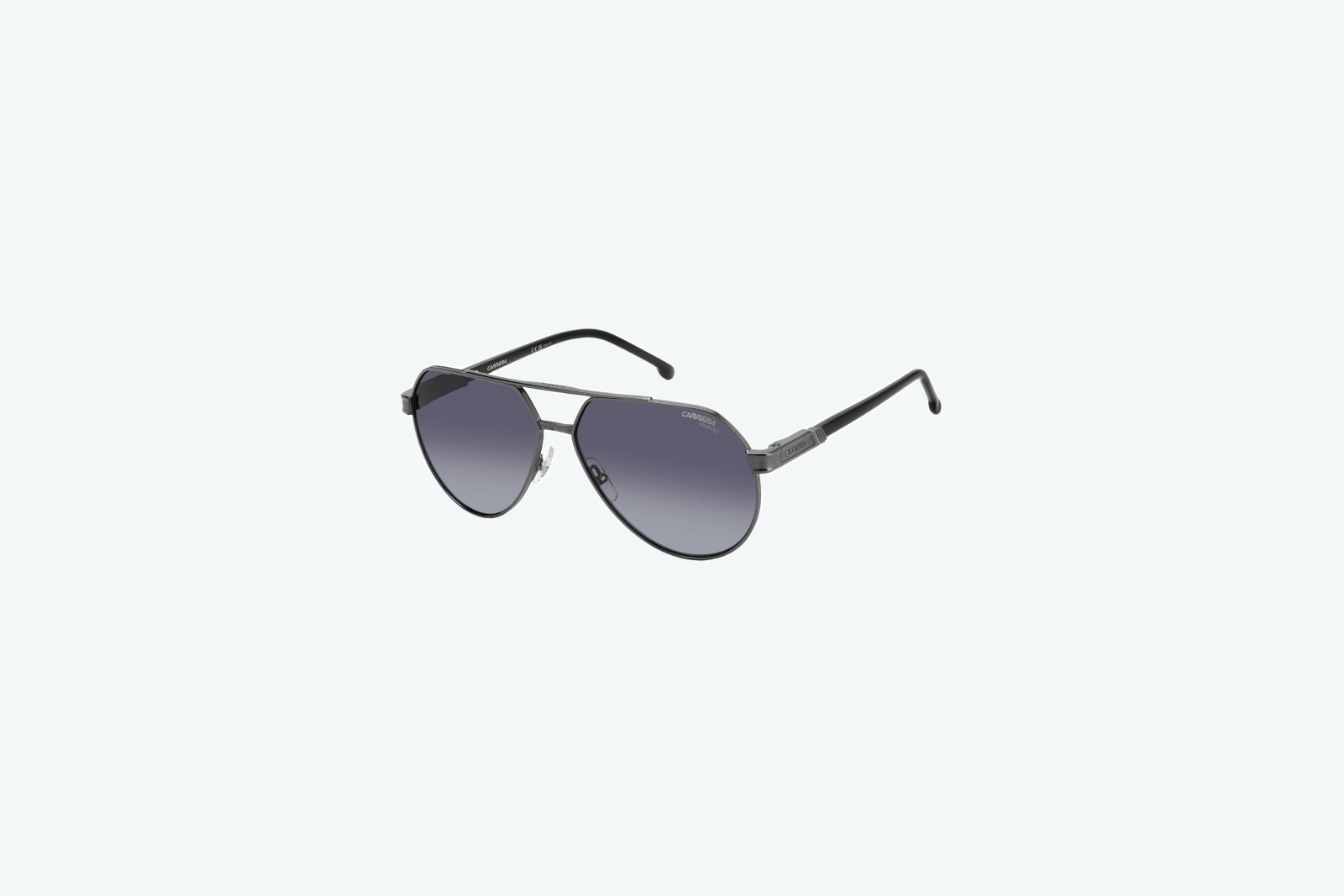 Мужские солнцезащитные очки от CARRERA выполнены из металла в цвете "Dark Ruthenium". Линзы выполнены в цвете "Grey Shaded Polarized". Очки обладают 100% защитой от ультрафиолетового излучения.