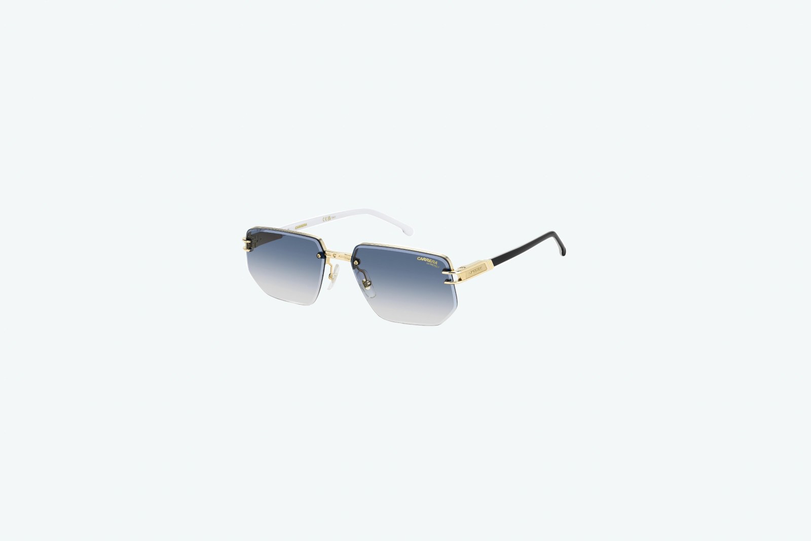 Мужские солнцезащитные очки от CARRERA выполнены из металла в цвете "Black White". Линзы выполнены в цвете "Dk Blue Shaded". Очки обладают 100% защитой от ультрафиолетового излучения.