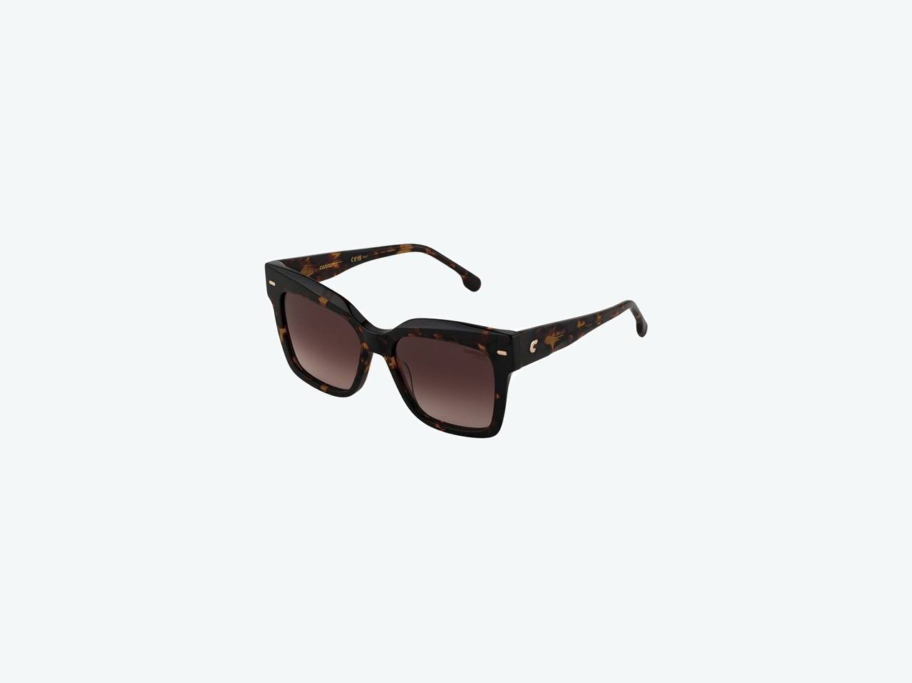 Женские солнцезащитные очки от CARERRA выполнены из ацетата в цвете "Havana". Линзы выполнены в цвете "Brown Shaded". Очки обладают 100% защитой от ультрафиолетового излучения.