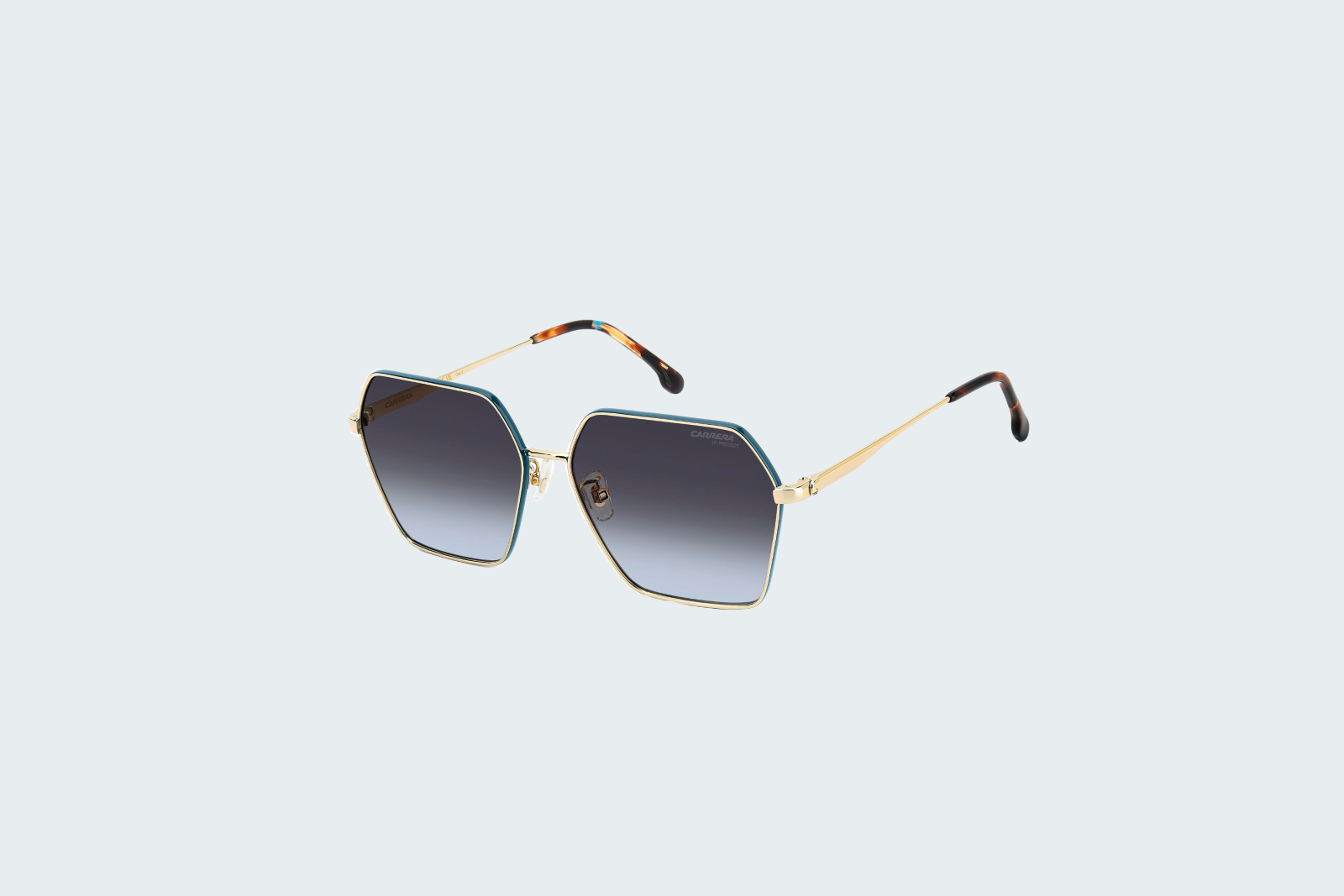 Солнцезащитные женские очки Carrera 3057 S в коде цвета OGA сочетают в себе золотистую оправ с голубыми акцентами и градиентными линзами темно-серого тона. Их ретро-футуристический дизайн с силиконовыми носоупорами и обтекаемыми линиями отсылает к архивным моделям бренда, сохраняя спортивную элегантность. Модель оснащена высококачественными линзами с защитой UV, обеспечивающими блокировку ультрафиолета и естественную цветопередачу. Металлическая оправа гарантирует удобную посадку и долговечность ношения. Узнаваемая надпись Carrera на дужке и детали в стиле 80-х подчёркивают наследие бренда, создавая образ с налётом винтажной динамики.