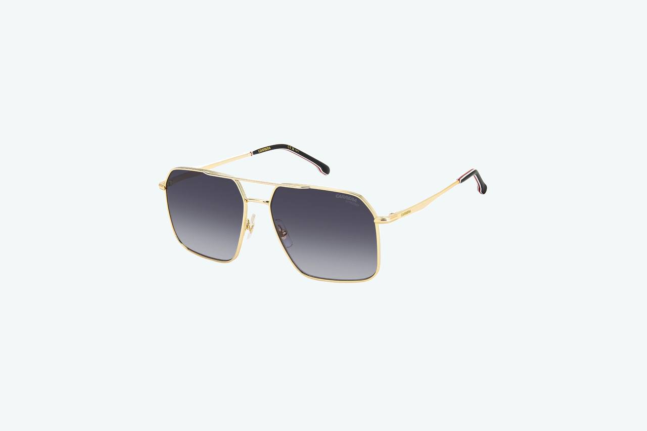 Мужские солнцезащитные очки от CARRERA выполнены из металла в цвете "Gold". Линзы выполнены в цвете "Dark Grey Polarized". Очки обладают 100% защитой от ультрафиолетового излучения.