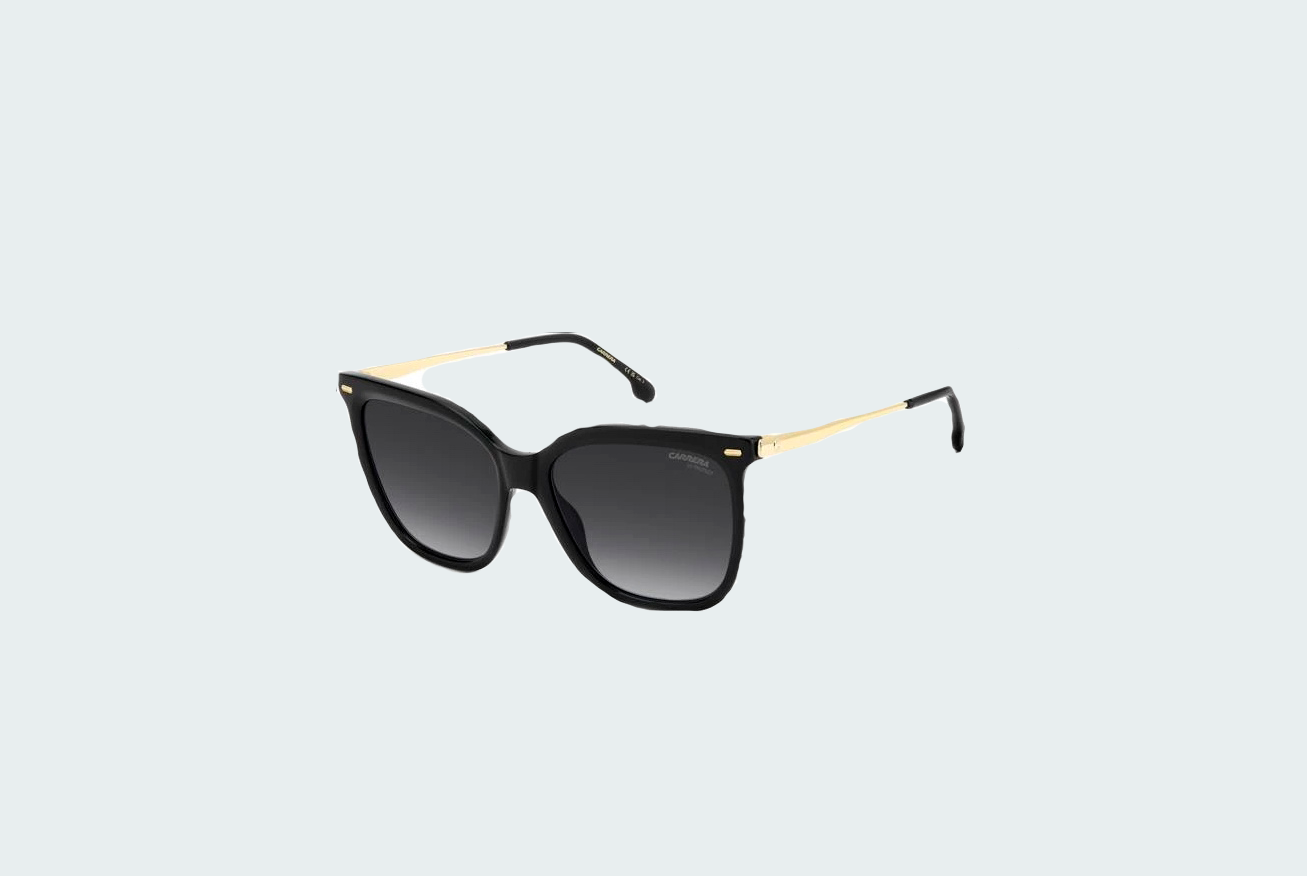 Солнцезащитные женские очки Carrera 3071/S в коде цвета 2M2 сочетают в себе глубокий черном цвете оправы с золотистыми акцентами и градиентными линзами темно-серого тона. Их классический дизайн с формой оправы «кошачий глаз» и закруглёнными линиями отражает ретро-элегантность и спортивный дух бренда. Модель оснащена высококачественными линзами с защитой UV, обеспечивающими блокировку ультрафиолета и естественную цветопередачу. Лёгкая оправа из ацетата гарантирует удобную посадку и долговечность ношения. Узнаваемый логотип Carrera на дужке и винтажные детали подчёркивают наследие бренда, создавая образ с налётом гоночной классики.