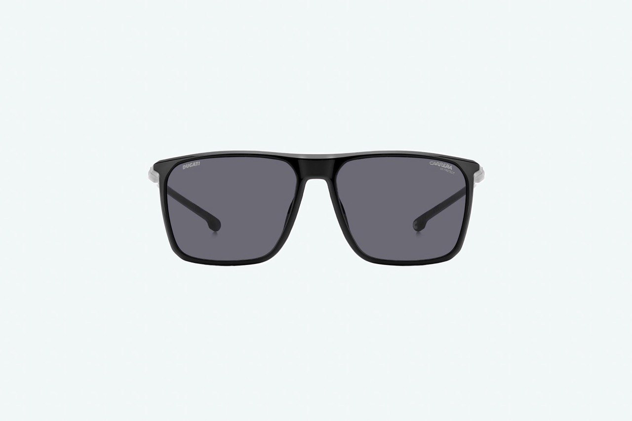 Мужские солнцезащитные очки от CARRERA выполнены из полиамида в цвете "Black Grey". Линзы выполнены в цвете "Grey". Очки обладают 100% защитой от ультрафиолетового излучения.
