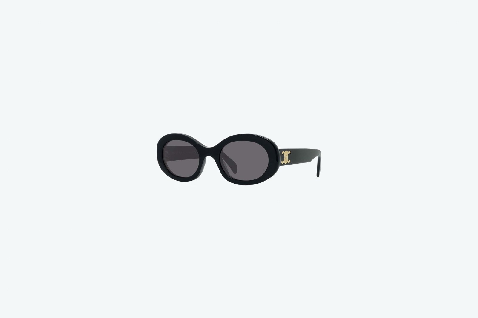 Женские солнцезащитные очки от CE'LINE выполнены из ацетата в цвете "Nero". Линзы выполнены в цвете "Grigio".