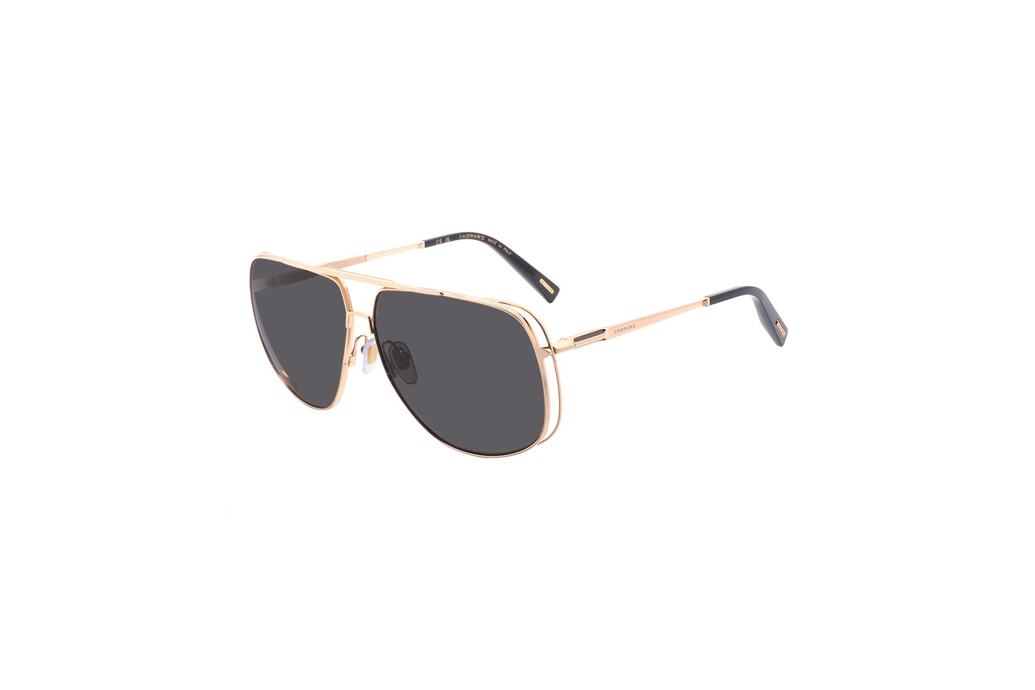 Классическая оправа «авиатор» из легкого металла золотого цвета. Эффектные металлические дужки украшены логотипом бренда и дополнены черными заушниками. Темно-серые линзы на 100% защищают глаза от вредного ультрафиолета. В комплекте — фирменный чехол и салфетка.