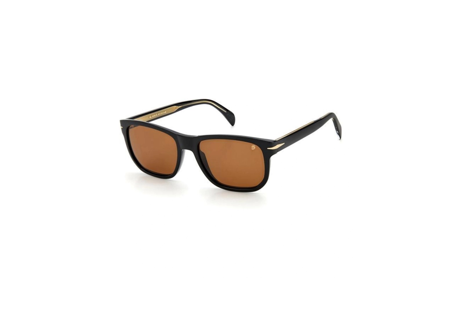 Изящная квадратная оправа выполнена из ацетата черного цвета. Коричневые линзы с монограммой DB на 100% защищают глаза от вредного ультрафиолета. В комплекте — фирменный чехол и салфетка.
