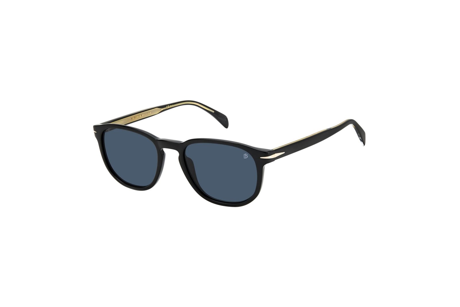 Круглая оправа выполнена из черного ацетата. Темно-синие линзы с монограммой DB на 100% защищают глаза от вредного ультрафиолета. В комплекте — фирменный чехол и салфетка.