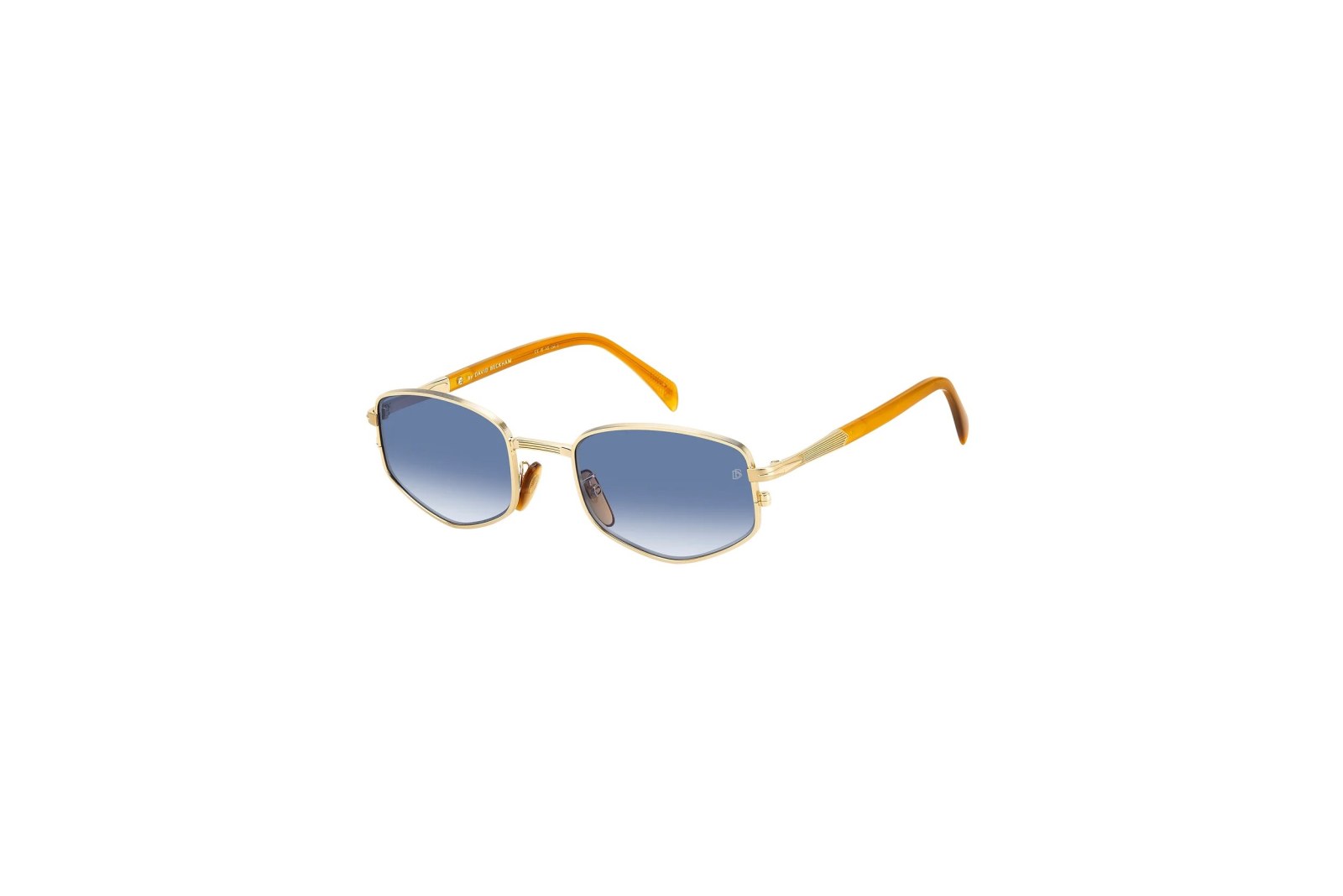 Геометрическая восьмиугольная оправа из легкого металла золотого цвета. Синие градиентные линзы на 100% защищают глаза от вредного ультрафиолета. Изысканную форму ободков дополняют дужки со стилизованным ромбом. Линзы могут быть рецептурными, зеркальными или поляризованными. В комплекте — фирменный футляр для очков и салфетка.