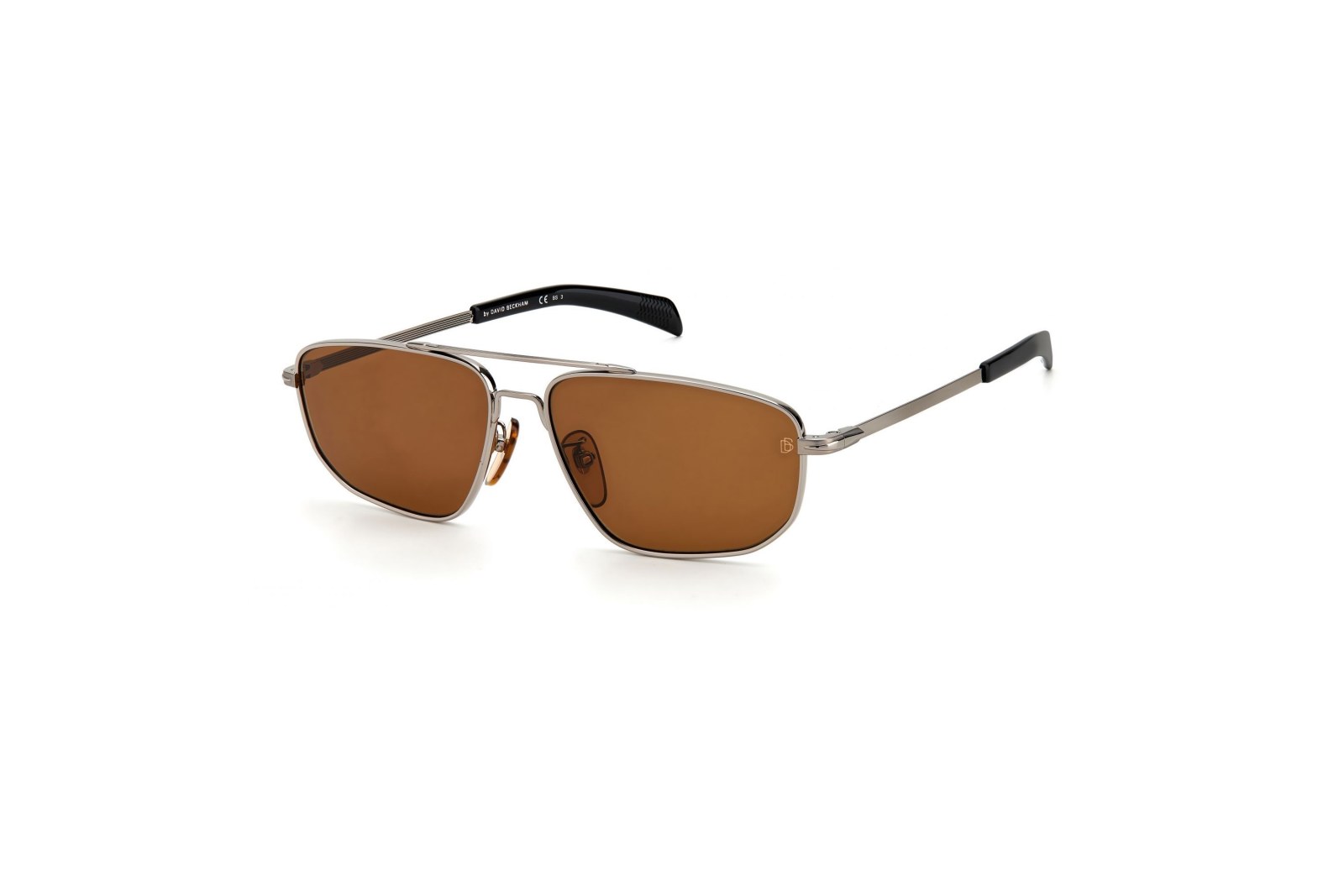 Классическая прямоугольная оправа выполнена из легкого золотого металла и дополнена дужками с черными заушниками. Коричневые линзы с монограммой DB на 100% защищают глаза от вредного ультрафиолета. В комплекте — фирменный чехол и салфетка.
