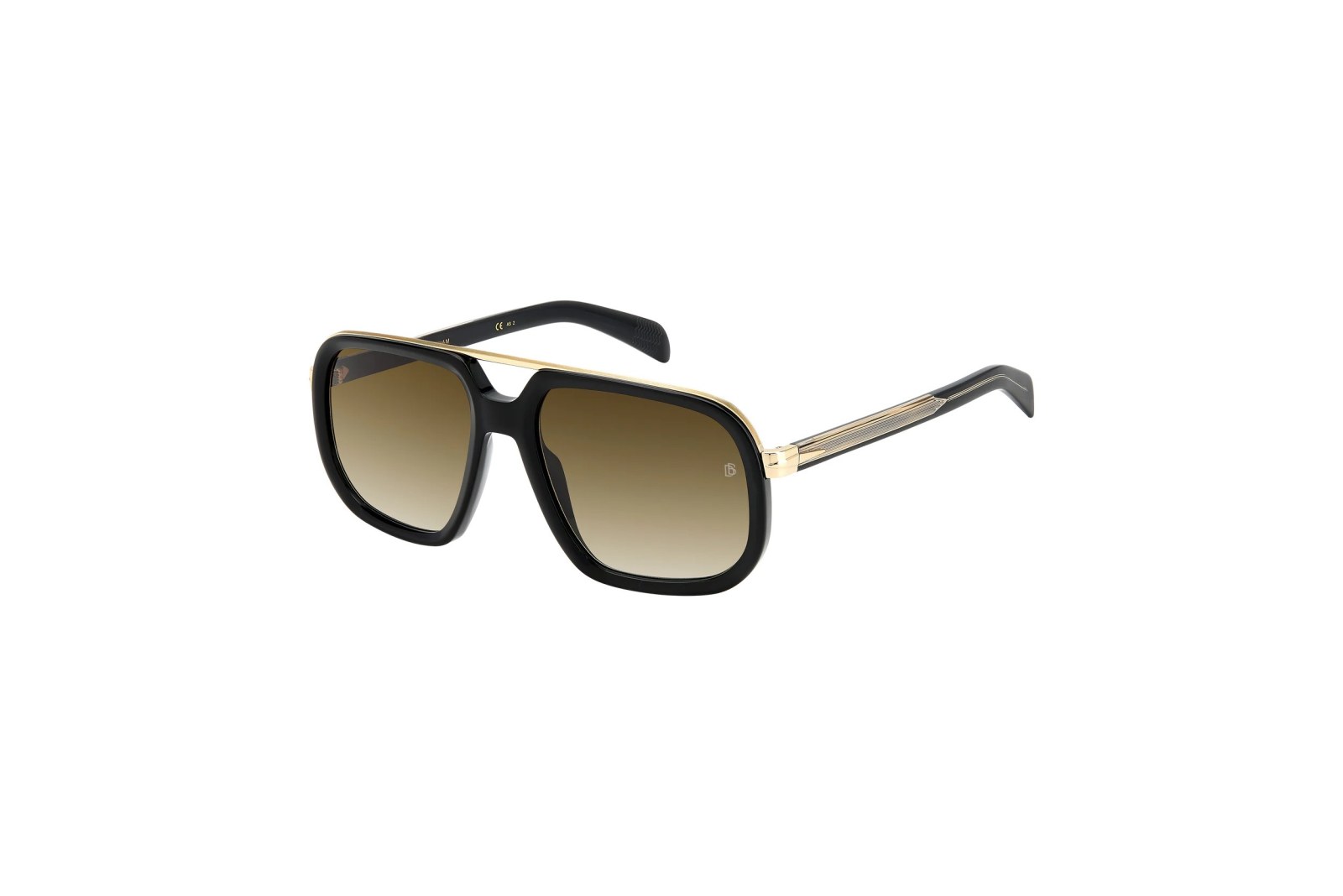 Оригинальная квадратная оправа выполнена из легкого металла черно-золотого цвета. Коричневые градиентные линзы с монограммой DB на 100% защищают глаза от вредного ультрафиолета. В комплекте — фирменный чехол и салфетка.