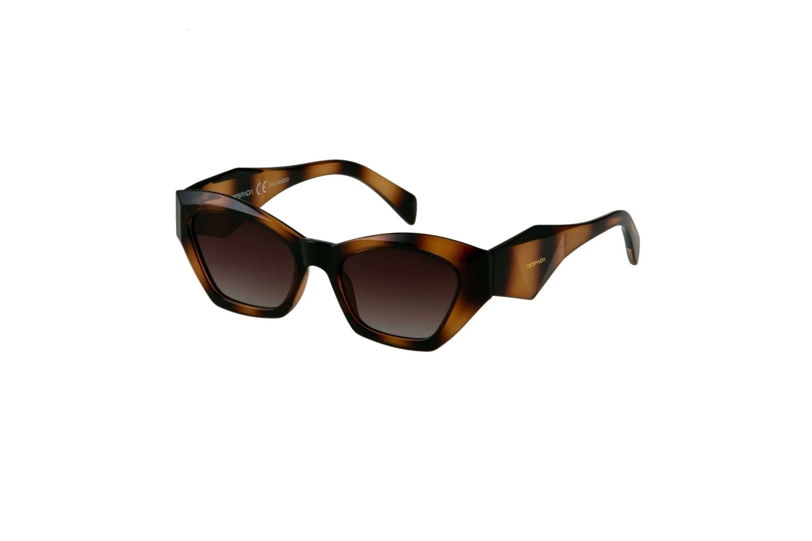 Ультрасовременная геометрическая оправа выполнена из ацетата коричневого цвета в черепаховой расцветке и дополнена эффектными массивными дужками. Градиентные коричневые линзы на 100% защищают глаза от вредного ультрафиолета. В комплекте — фирменный футляр для очков и салфетка.