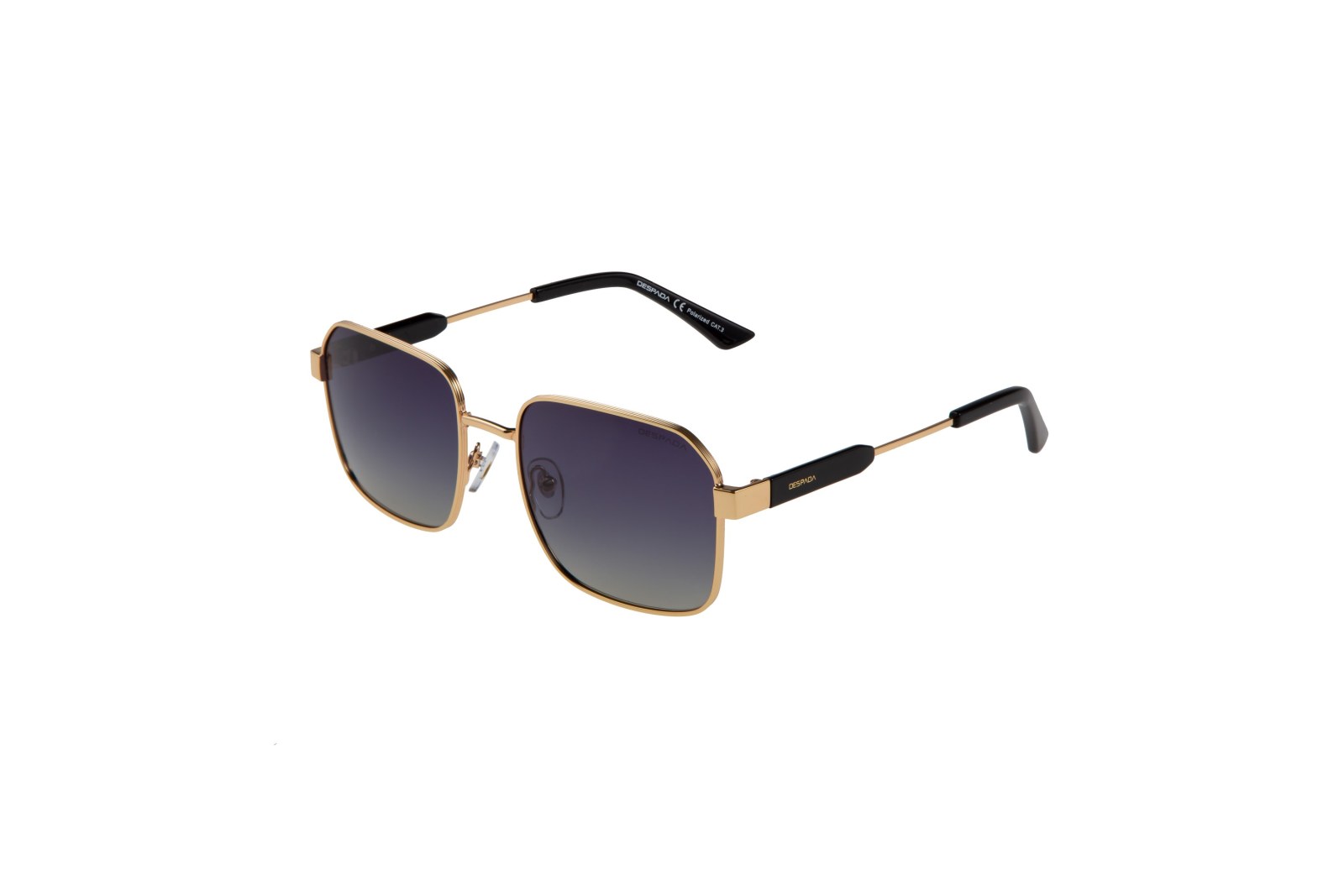 Квадратная оправа выполнена из металла золотого цвета и дополнена дужками и заушниками из ацетата черного цвета. Градиентные серые линзы со 100% защитой глаза от вредного ультрафиолета. В комплекте — фирменный футляр для очков и салфетка.