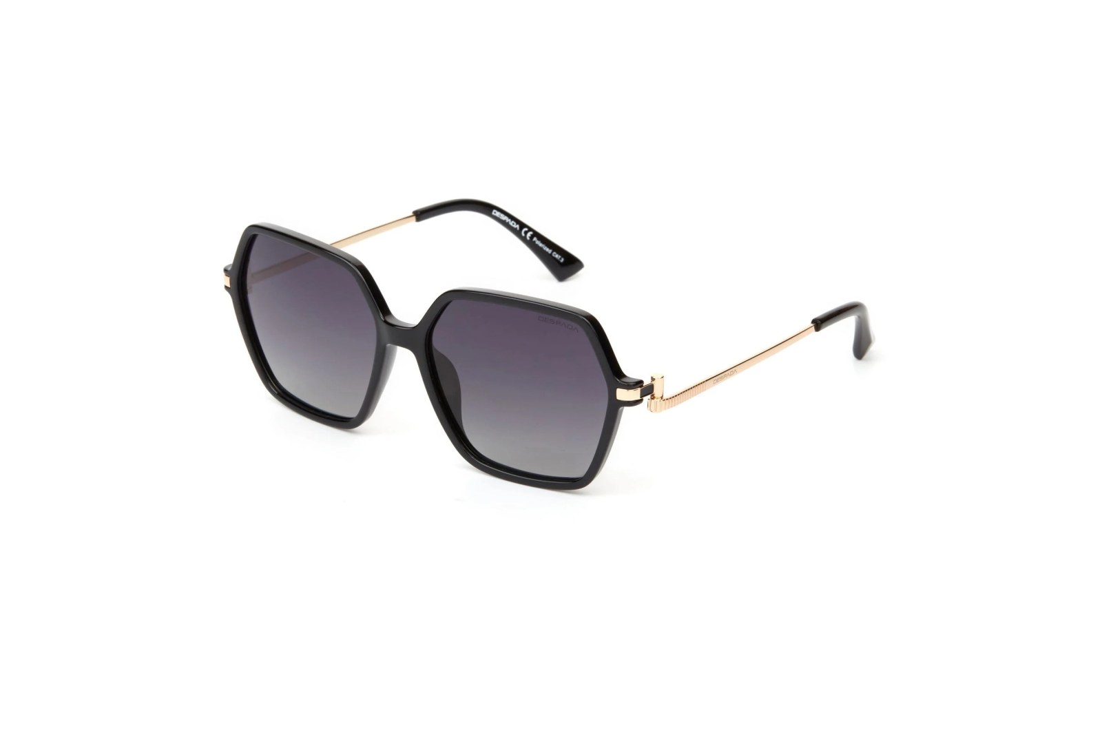 Геометрическая оправа выполнена из черного ацетата и золотистого металла. Высококачественные градиентные линзы уменьшают блики и на 100% защищают глаза от вредного ультрафиолета. В комплекте — фирменный чехол и салфетка.