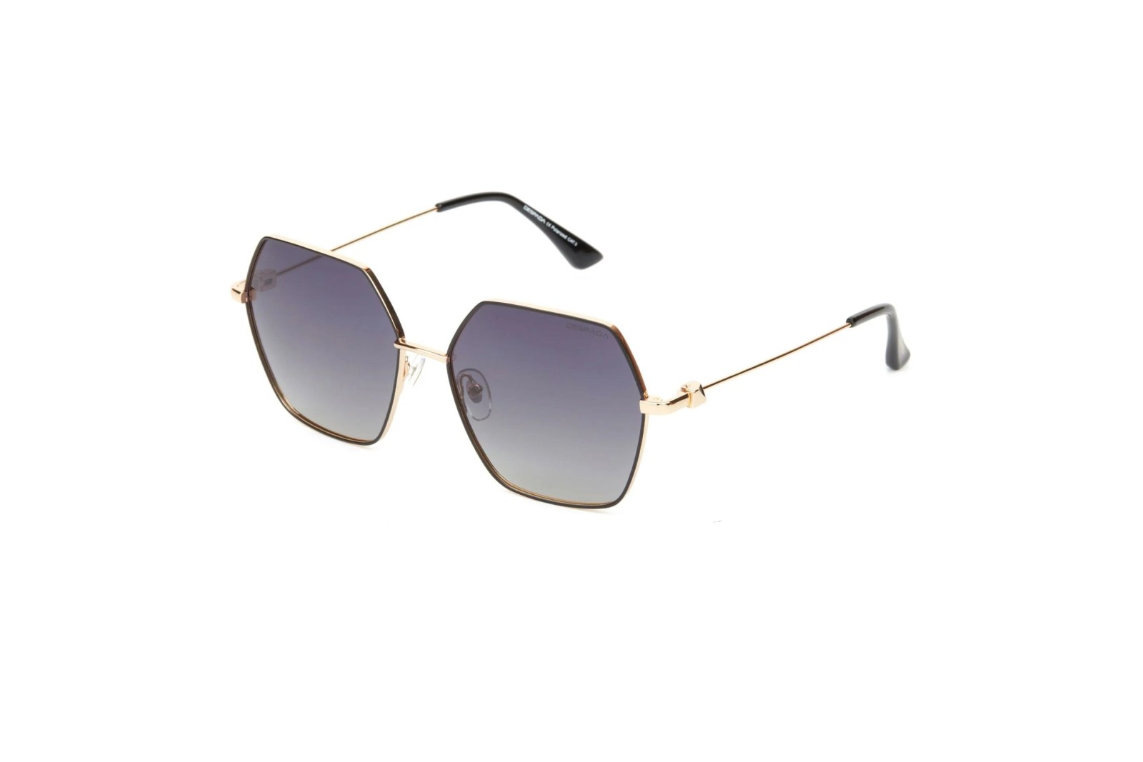 Стильная шестиугольная оправа выполнена из легкого металла. Высококачественные линзы уменьшают блики и на 100% защищают глаза от вредного ультрафиолета. В комплекте — фирменный чехол и салфетка.