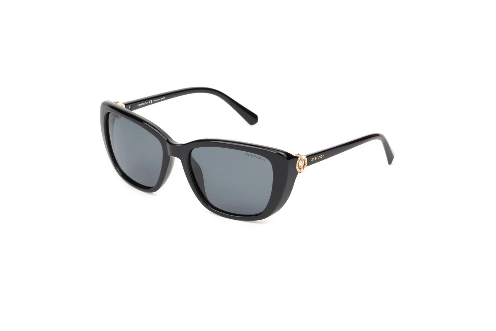 Тонкая оправа выполнена из прочного черного ацетата и украшена декоративным металлическим элементом на дужках. Высококачественные линзы уменьшают блики и на 100% защищают глаза от вредного ультрафиолета. В комплекте — фирменный чехол и салфетка.
