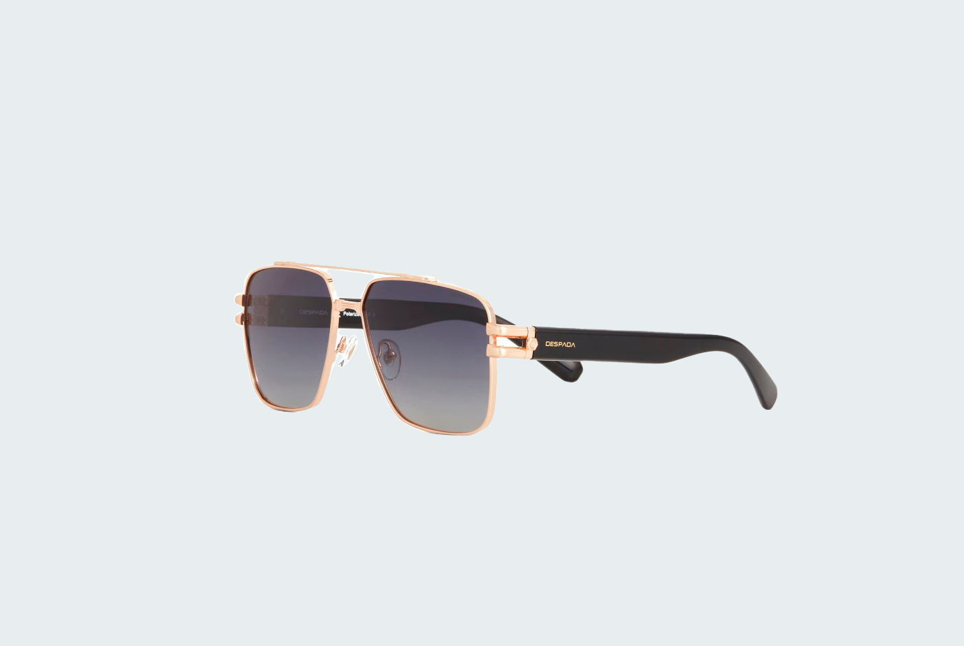 Солнцезащитные мужские очки DESPADA DS 2368 (C 1) сочетают в себе элегантность и современный дизайн. Модель представлена в насыщенном золотом цвете, придающим теплоту и универсальность. Универсальная форма оправы «авиатор» обеспечивает комфорт и устойчивость. Линзы дымчатого градиентного тона с надежной УФ-защитой эффективно оберегают глаза от солнечных лучей. Этот аксессуар станет идеальным дополнением для повседневного и делового гардероба.