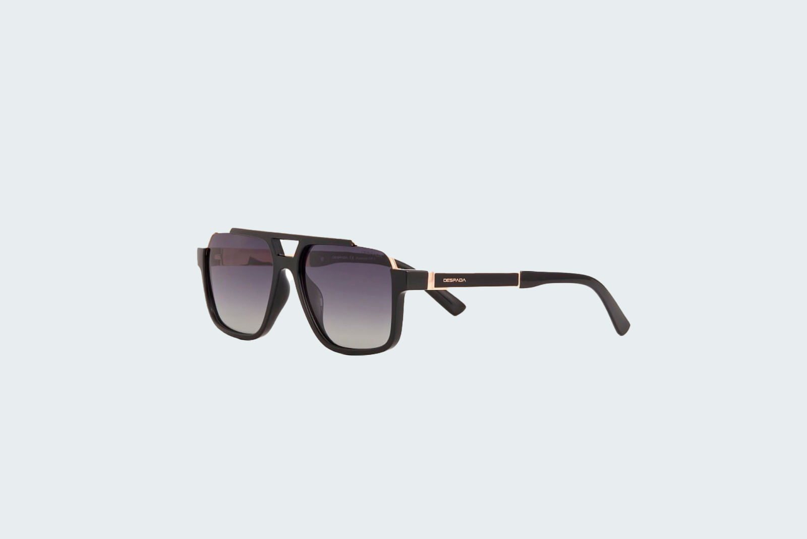 Солнцезащитные мужские очки DESPADA DS 2372 (C 1) сочетают в себе элегантность и современный дизайн. Модель представлена в насыщенном черном цвете с золотистыми вставками, придающим стиль и универсальность. Универсальная форма квадратной оправы обеспечивает комфорт и устойчивость. Линзы градиентного серого тона с надежной УФ-защитой эффективно оберегают глаза от солнечных лучей. Этот аксессуар станет идеальным дополнением для повседневного и делового гардероба.