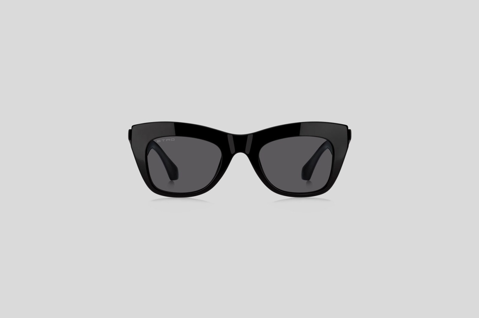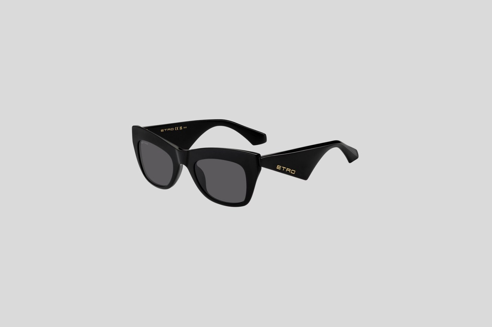Массивная модель с оправой cat eye выполнена из черного ацетата. Широкие геометричные дужки украшены тисненым логотипом золотистого оттенка. Серые линзы на 100% защищают от вредного воздействия ультрафиолетовых лучей. В комплекте — фирменный чехол и салфетка.