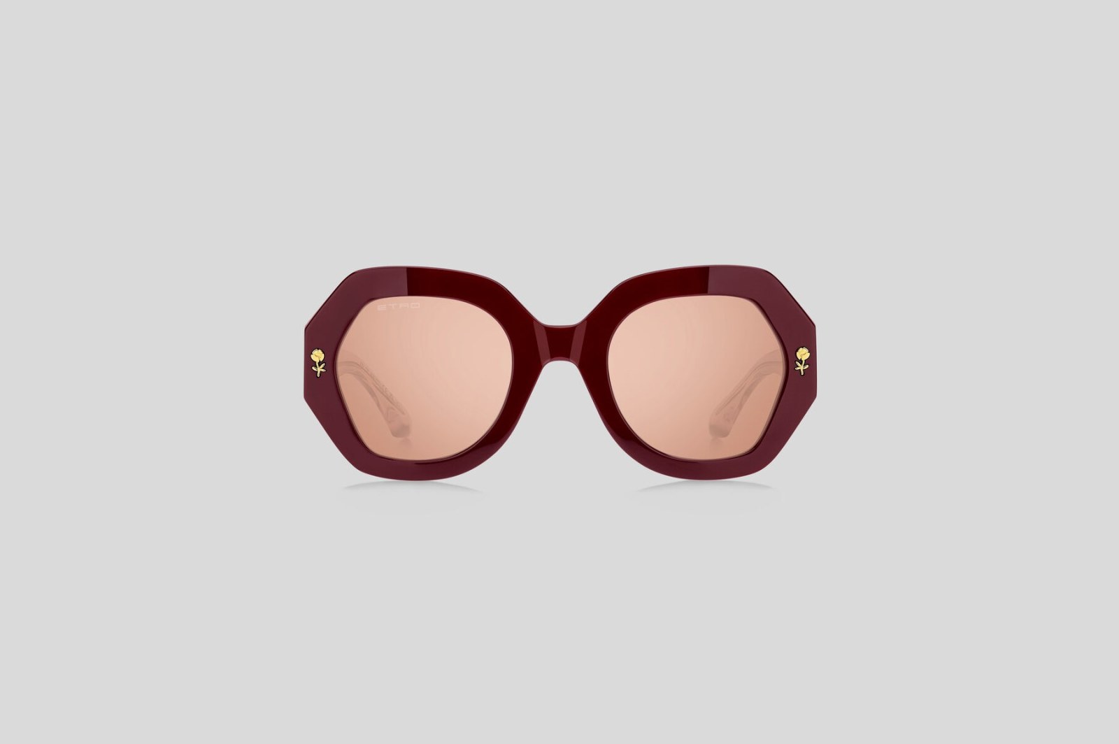 Массивная модель с геометричной оправой выполнена из красного ацетата. Широкие геометричные дужки розового цвета украшены тисненым логотипом золотистого оттенка. Розовые линзы на 100% защищают от вредного воздействия ультрафиолетовых лучей. В комплекте — фирменный чехол и салфетка.