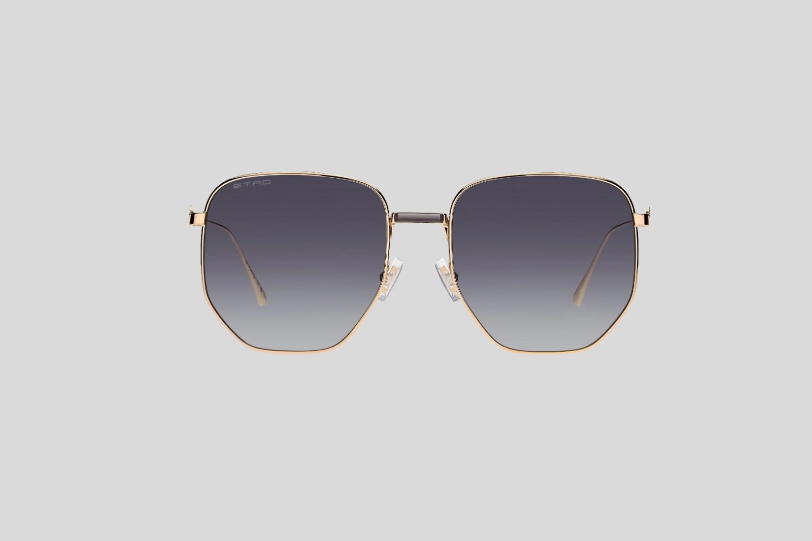 Стильная модель с квадратной оправой выполнена из металла золотистого цвета и дополнена тонкими дужками. Коричневые линзы на 100% защищают от вредного воздействия ультрафиолетовых лучей. В комплекте — фирменный чехол и салфетка.
