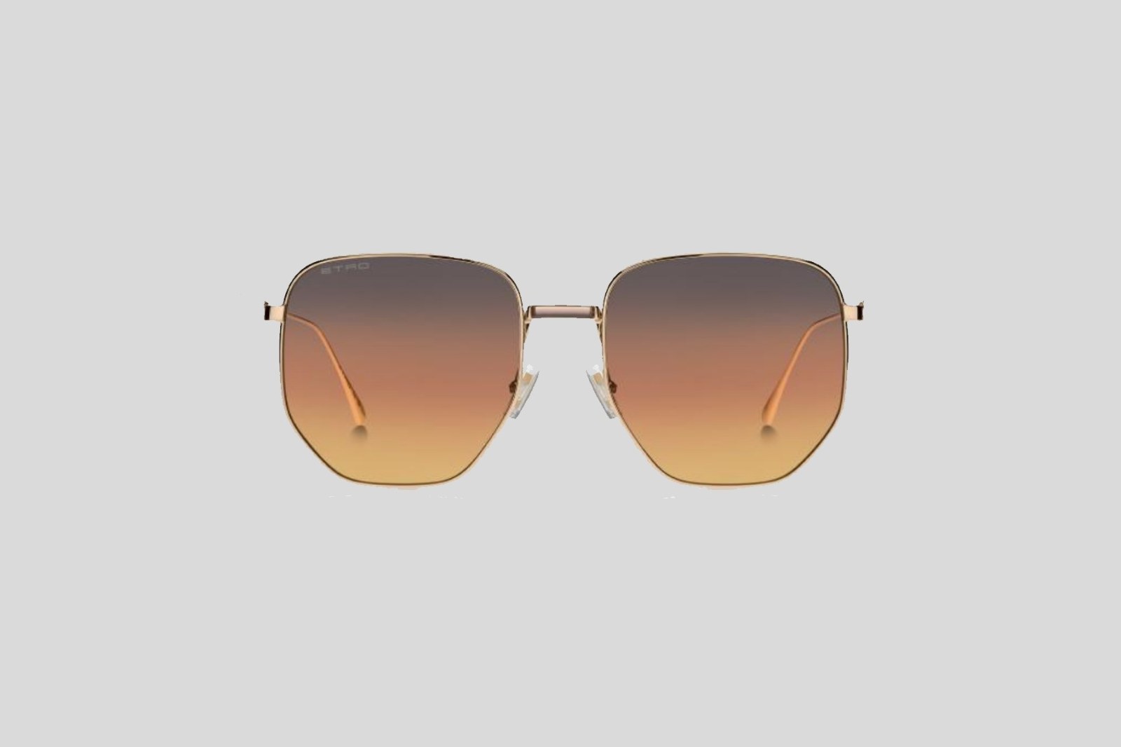 Стильная модель с квадратной оправой выполнена из металла золотистого цвета и дополнена тонкими дужками. Градиентные линзы оранжевого цвета на 100% защищают от вредного воздействия ультрафиолетовых лучей. В комплекте — фирменный чехол и салфетка.