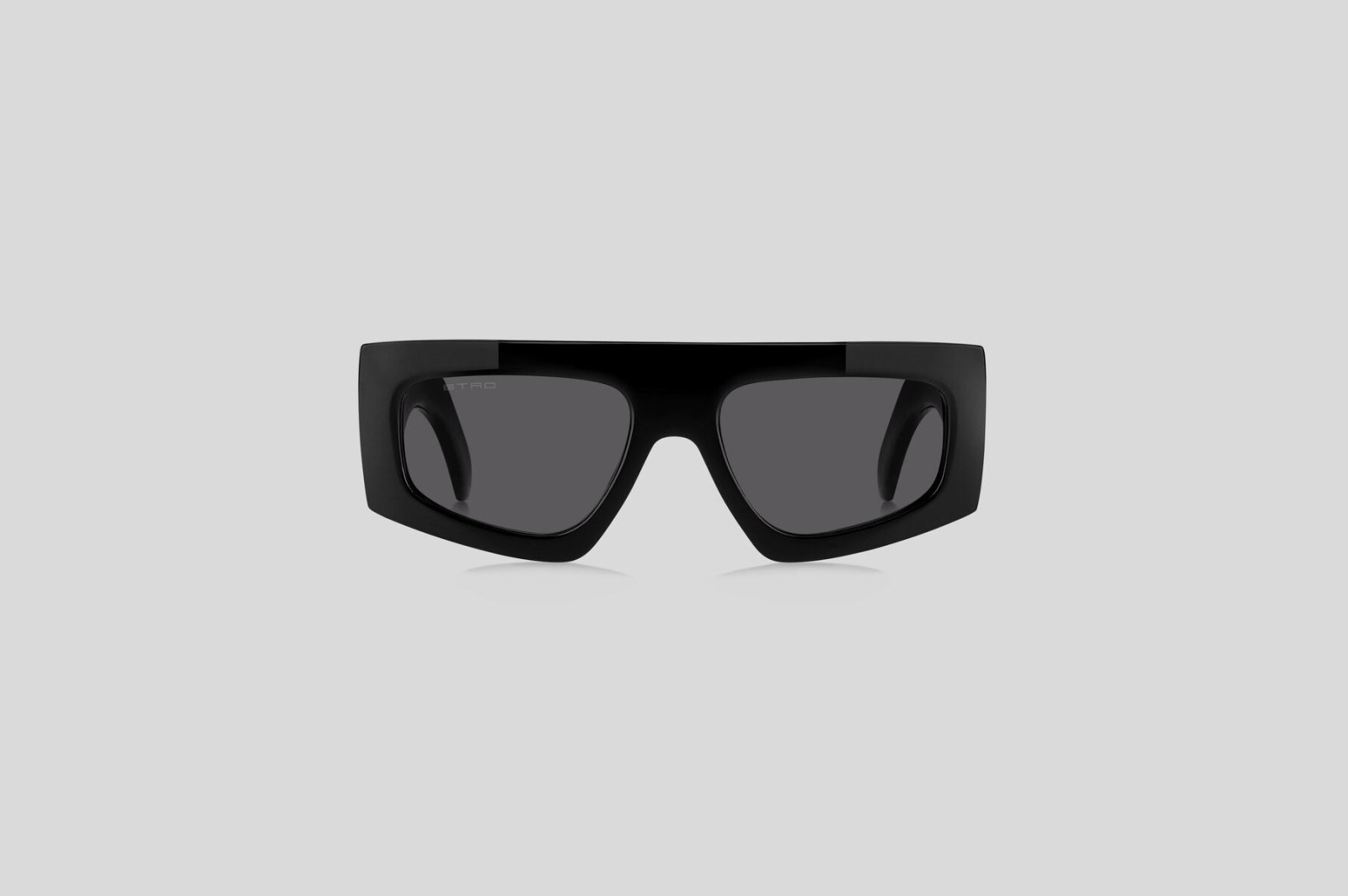 Массивная модель с прямоугольной оправой выполнена из черного ацетата. Широкие дужки украшены тисненым логотипом бренда. Серые линзы на 100% защищают от вредного воздействия ультрафиолетовых лучей. В комплекте — фирменный чехол и салфетка.