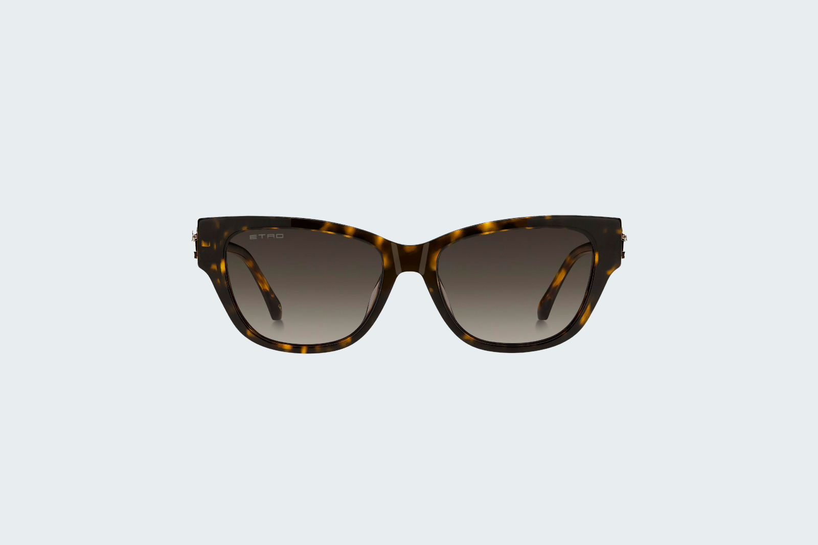 Солнцезащитные женские очки ETRO 0063/F/S 086 сочетают в себе итальянскую роскошь и timeless-элегантность, отражая уникальный стиль бренда. Модель с утонченной формой оправы «кошачий глаз» выполнена в глубоком черном цвете с янтарными деталями и фирменным узором Etro. Линзы с градиентным черным затемнением обеспечивают защиту от ультрафиолета и комфортное восприятие окружающего мира. Облегченная оправа из высококачественного ацетата гарантирует удобную посадку и долговечность использования. Этот аксессуар станет изысканным дополнением вашего образа, подчеркивая утонченный вкус и статус владельца.