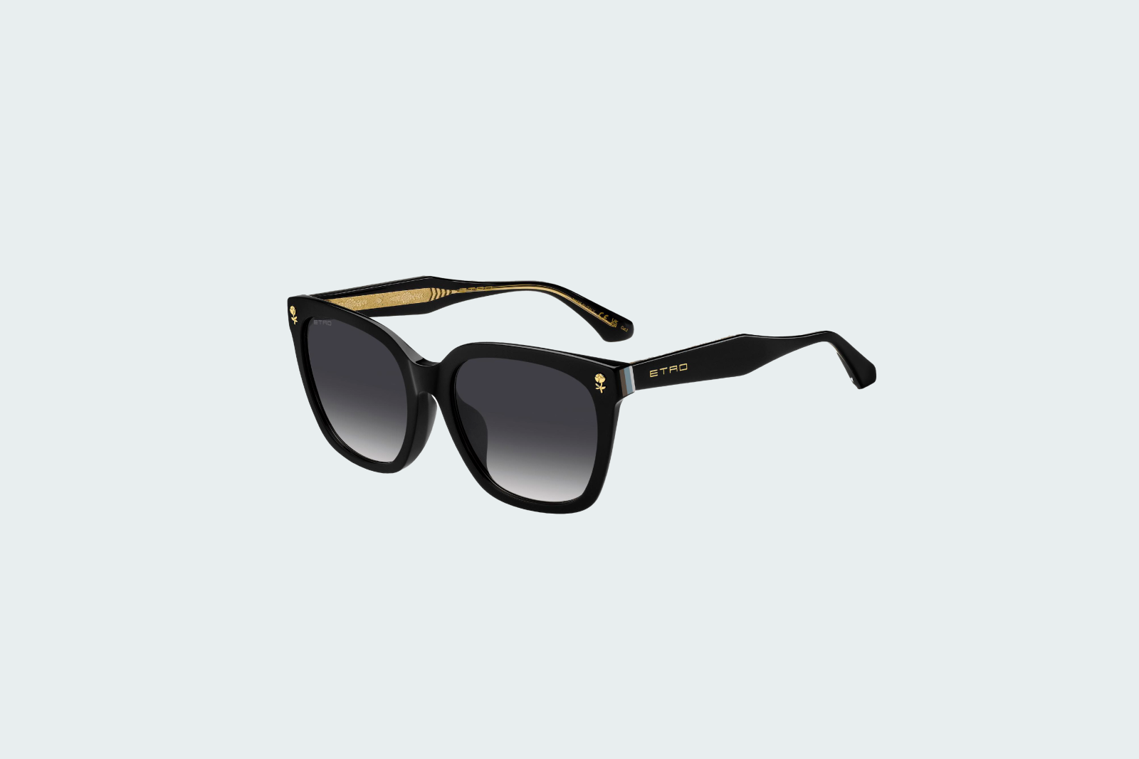 Солнцезащитные женские очки ETRO 0065/F/S 807 сочетают в себе итальянскую роскошь и современную элегантность, отражая уникальный стиль бренда. Модель с утонченной квадратной формой выполнена в глубоком черном цвете с золотистыми акцентами и фирменным узором Etro. Линзы серого градиентного оттенка обеспечивают защиту от ультрафиолета и комфортное восприятие окружающего мира. Облегченная оправа из premium-ацетата гарантирует удобную посадку и изысканность ношения. Этот аксессуар станет идеальным дополнением как повседневного, так и делового образа, подчеркивая аристократичный вкус владельца.