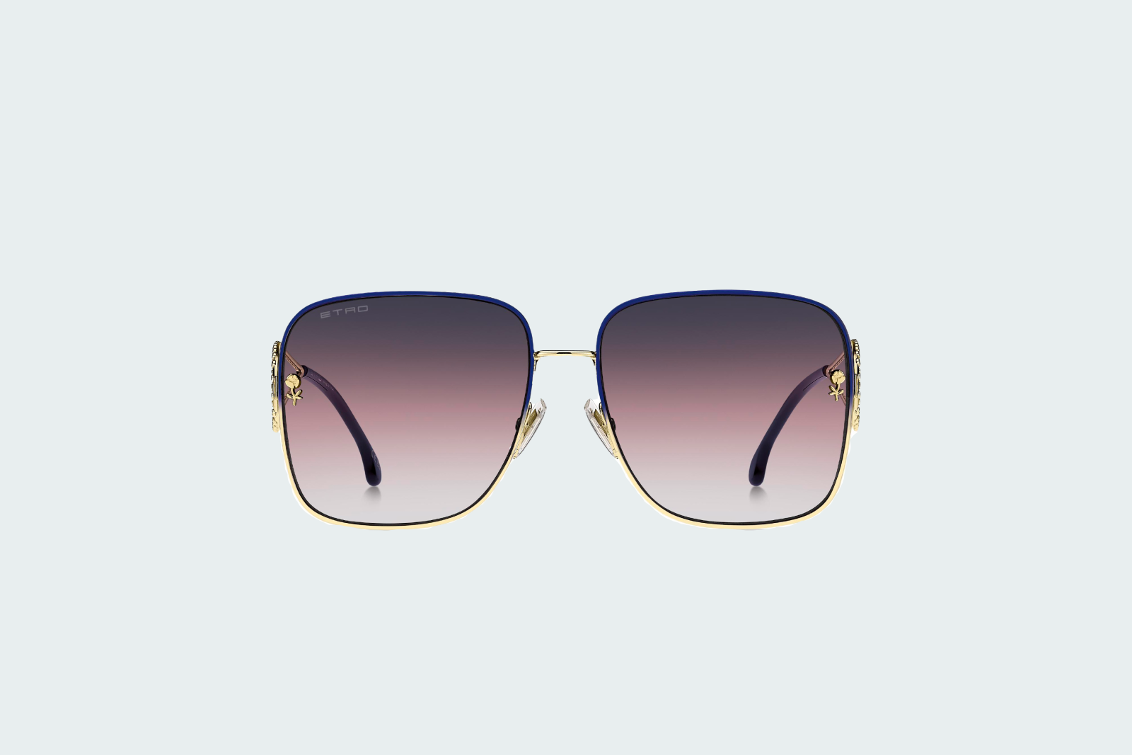 Солнцезащитные женские очки ETRO 0070/S S9E сочетают в себе итальянскую роскошь и современную элегантность, отражая уникальный стиль бренда. Модель с утонченной квадартной формой выполнена в насыщенном сочетании золотистого и синего цветов с золотистыми акцентами и фирменным узором Etro. Линзы с градиентным синим затемнением обеспечивают защиту от ультрафиолета и комфортное восприятие окружающего мира. Прочная оправа из металлического сплава гарантирует удобную посадку и изысканность ношения. Этот аксессуар станет идеальным дополнением как повседневного, так и делового образа, подчеркивая аристократичный вкус владельца.