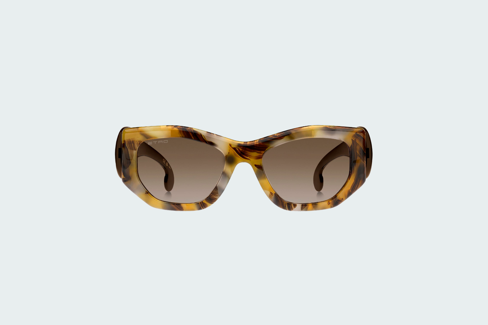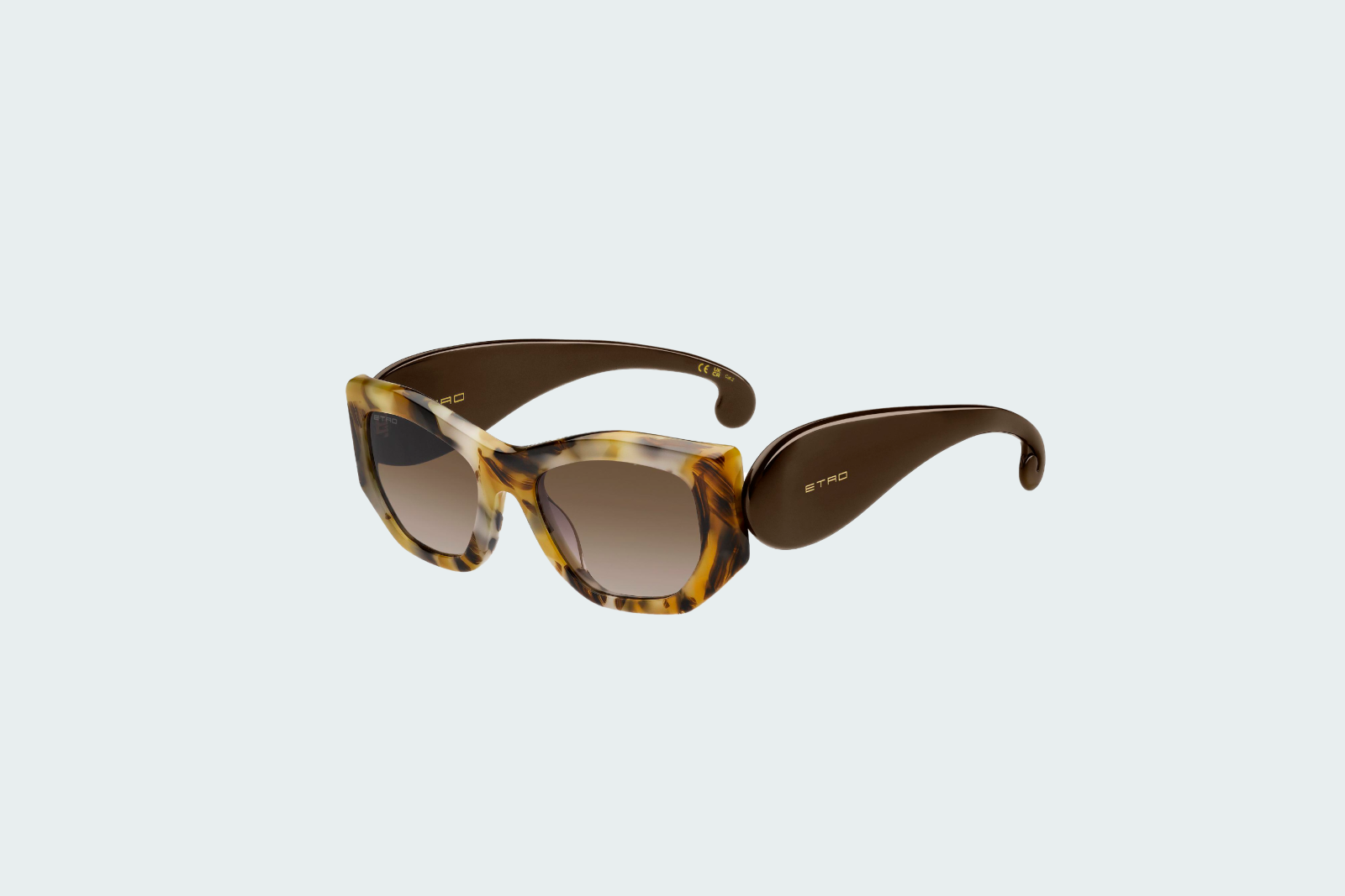 Солнцезащитные женские очки ETRO PAISLEY 086 сочетают в себе итальянскую роскошь и уникальный дизайн с культовым узором Paisley. Модель с классической прямоугольной формой выполнена в глубоком черепаховом оттенке с золотистыми акцентами и узнаваемым принтом Etro. Линзы с градиентным коричневым затемнением обеспечивают защиту от ультрафиолета и комфортное восприятие окружающего мира. Облегченная оправа из высококачественного ацетата гарантирует удобную посадку и долговечность использования. Этот эксклюзивный аксессуар станет изысканным дополнением вашего образа, подчеркивая утонченный вкус и статус владельца.