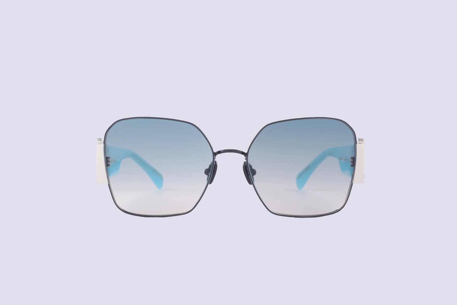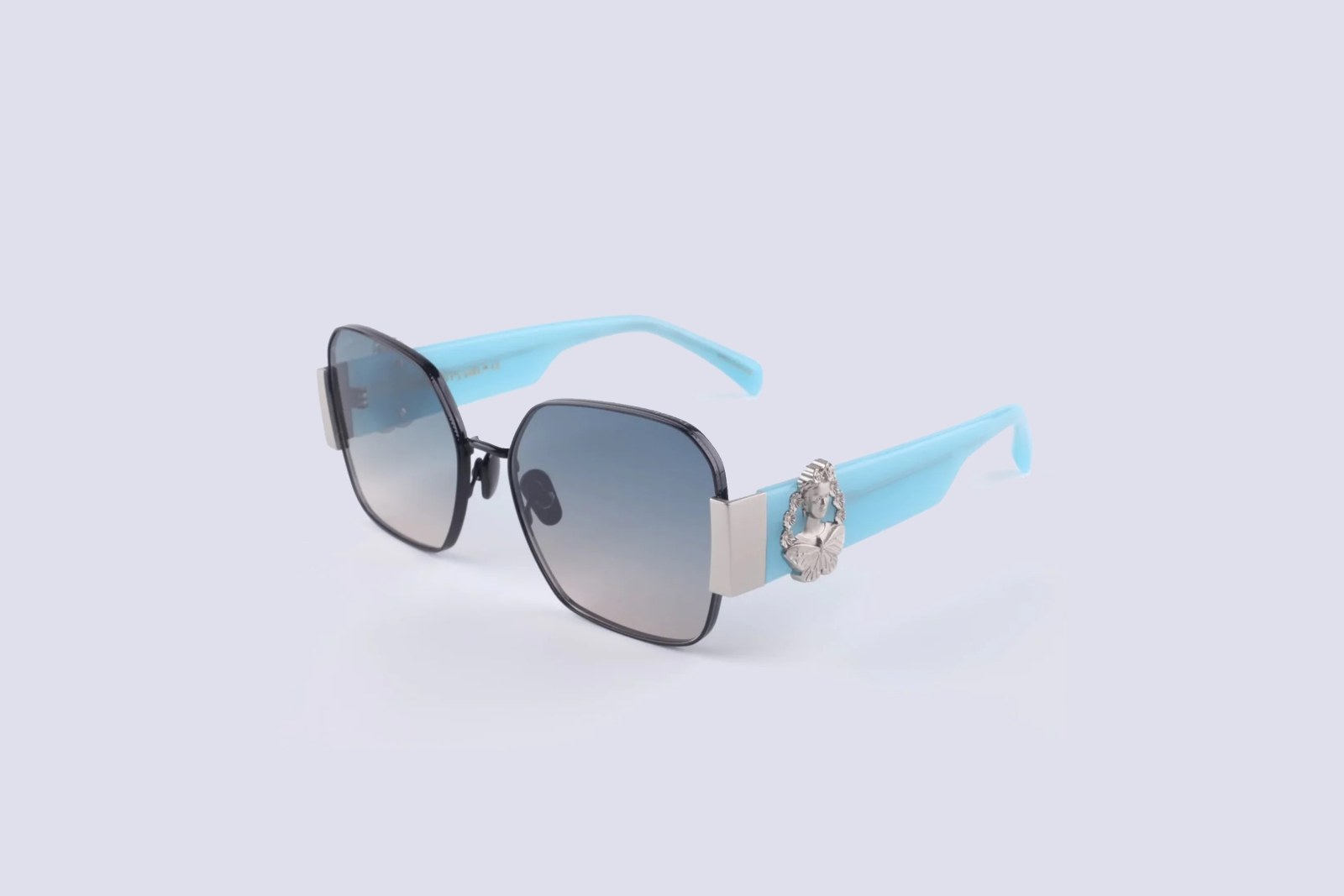 Современная квадратная оправа выполнена из легкого черного металла и украшена настоящим произведением искусства на дужках. Градиентные серые линзы с антибликовым покрытием на 100% защищают глаза от вредного ультрафиолета. В комплекте — фирменный чехол и салфетка.