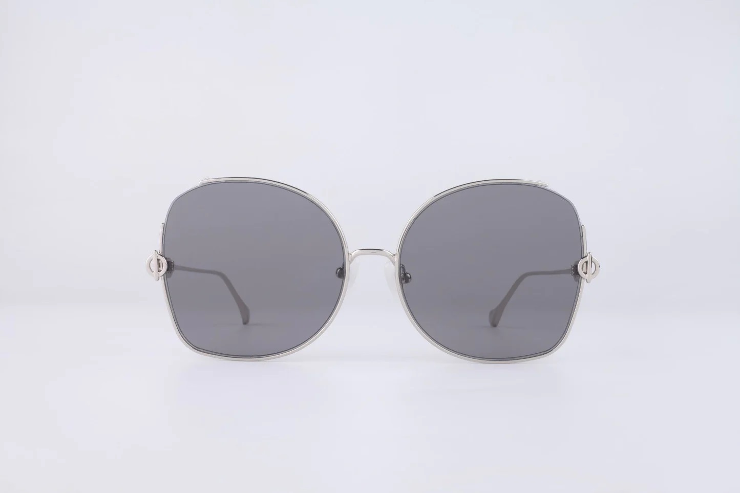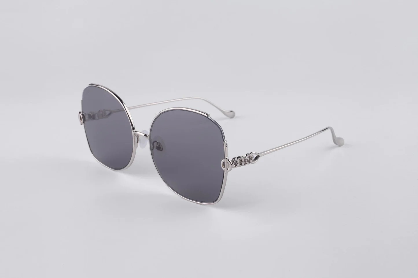 Изящная модель с округлой оправой выполнена из легкого серебристого металла с палладиевым покрытием. Серые линзы на 100% защищают глаза от вредного ультрафиолета. В комплекте — фирменный чехол и салфетка.