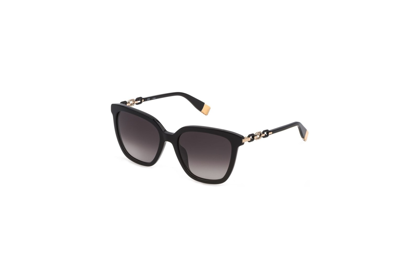 Классическая прямоугольная оправа выполнена из черного ацетата. Градиентные серые линзы со 100% защитой глаза от вредного ультрафиолета. В комплекте — фирменный футляр для очков и салфетка.
