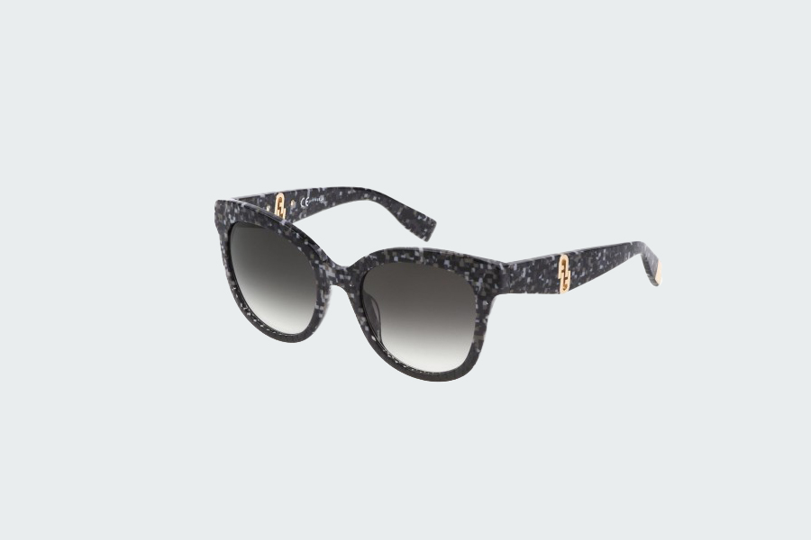 Модная оправа в форме «кошачий глаз » выполнена из прочного ацетата с мозаичным узором. Градиентные серые линзы со 100% защитой глаза от вредного ультрафиолета. В комплекте — фирменный футляр для очков и салфетка.