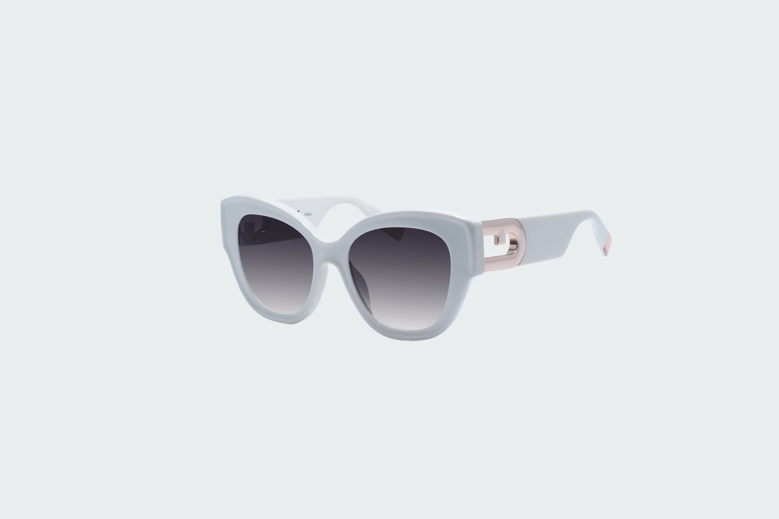 Оправа белого цвета выполнена из легкого и прочного ацетата. Градиентные линзы со средней степенью затемнения и 100% защитой глаза от вредного ультрафиолета. В комплекте — фирменный футляр для очков и салфетка.