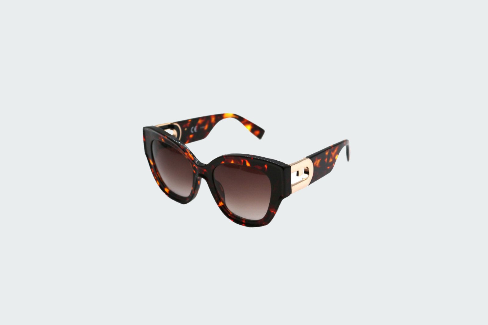 Модная черепаховая оправа выполнена из легкого и прочного пластика. Линзы с коричневым градиентом обеспечивают 100% защиту глаз от вредного ультрафиолета. В комплекте — фирменный футляр для очков и салфетка.