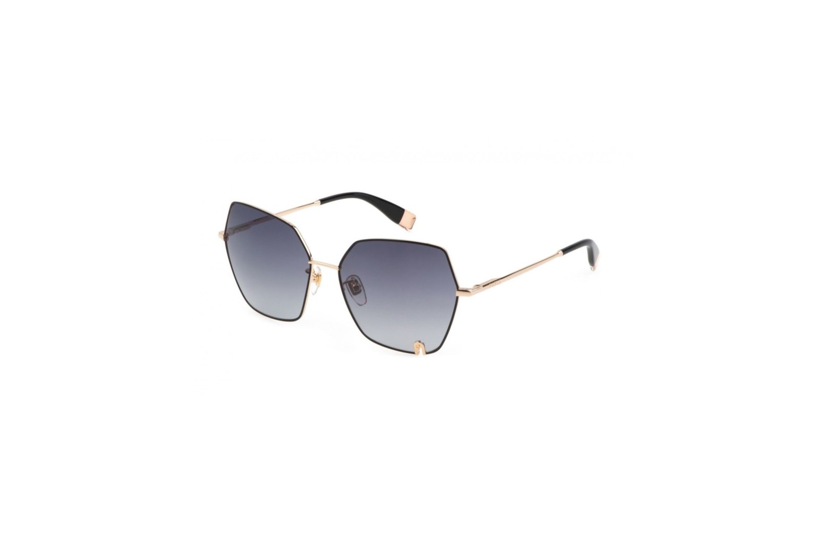 Изящная геометрическая оправа выполнена из легкого металла черно-золотого цвета. Градиентные серые линзы со 100% защитой глаза от вредного ультрафиолета. В комплекте — фирменный футляр для очков и салфетка.